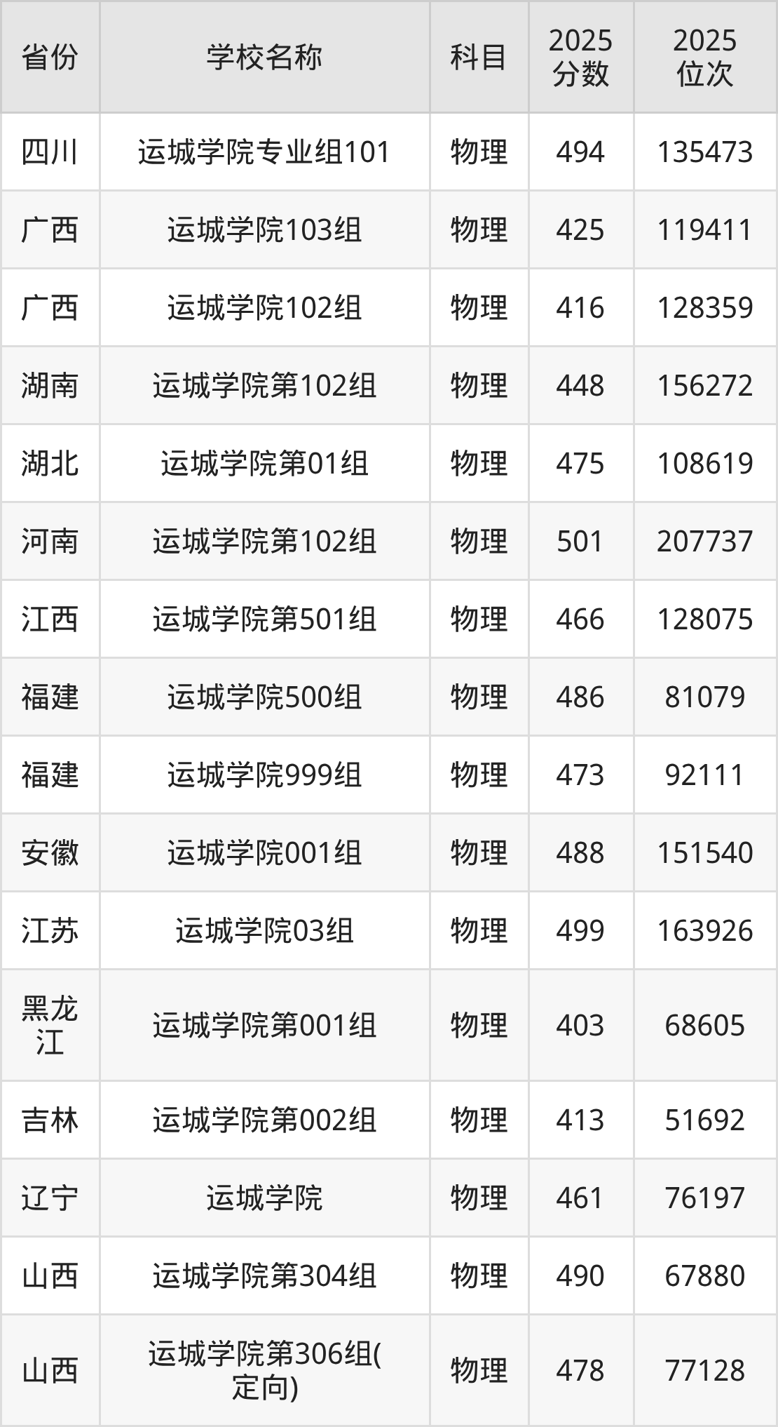 运城学院2025年有6个专业组面向山西省内首选了物理科目的考生招生: