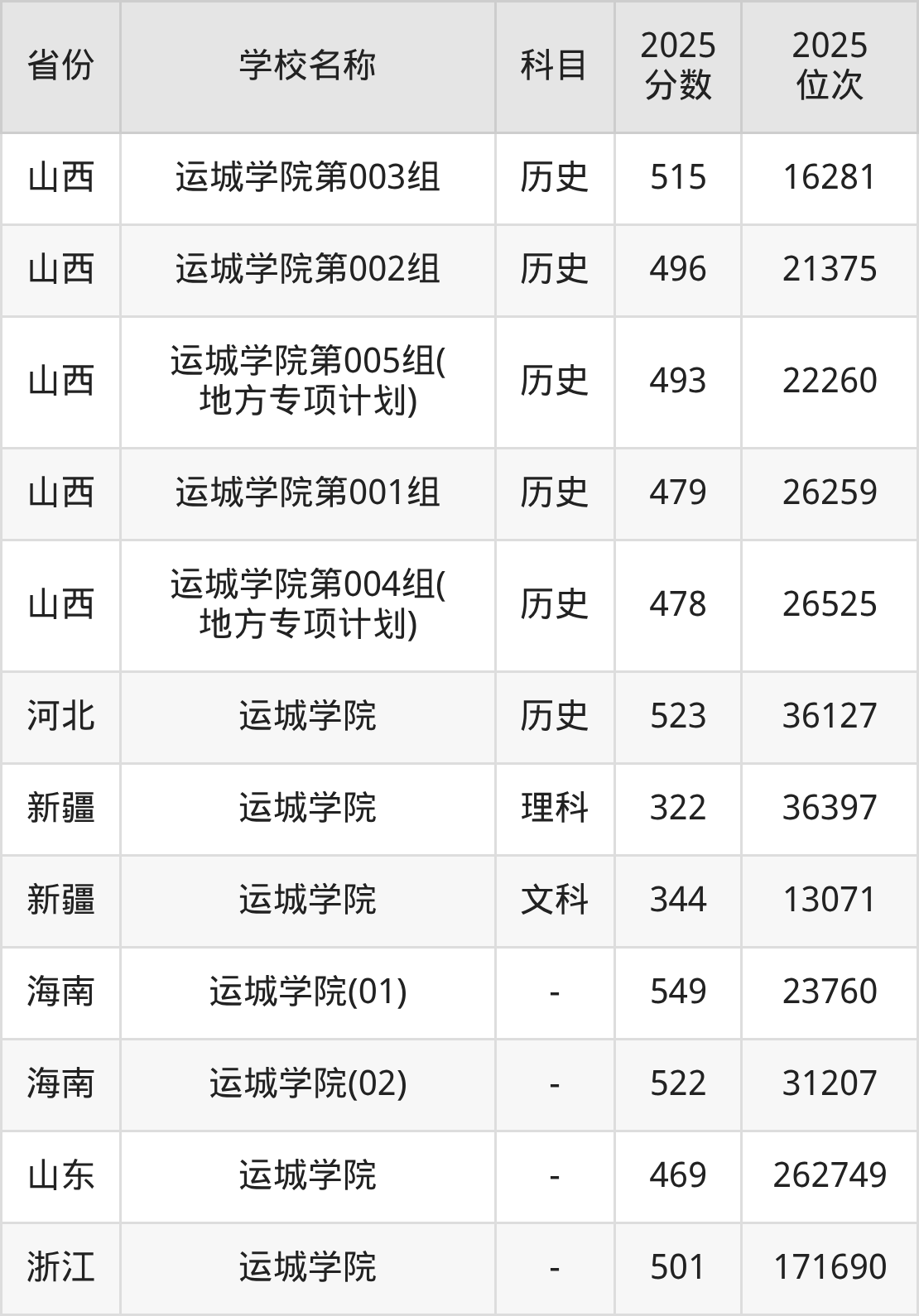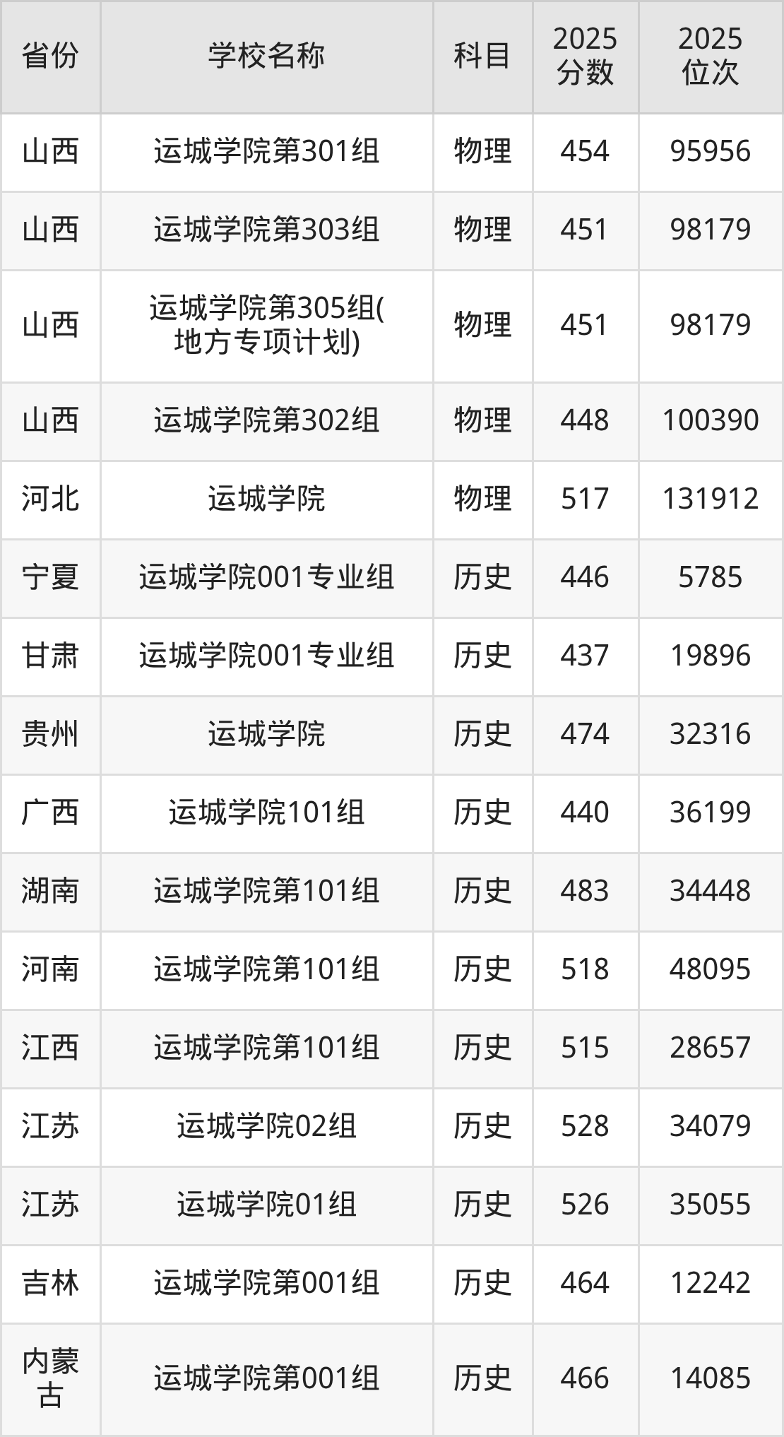 一、2025运城学院录取分数线