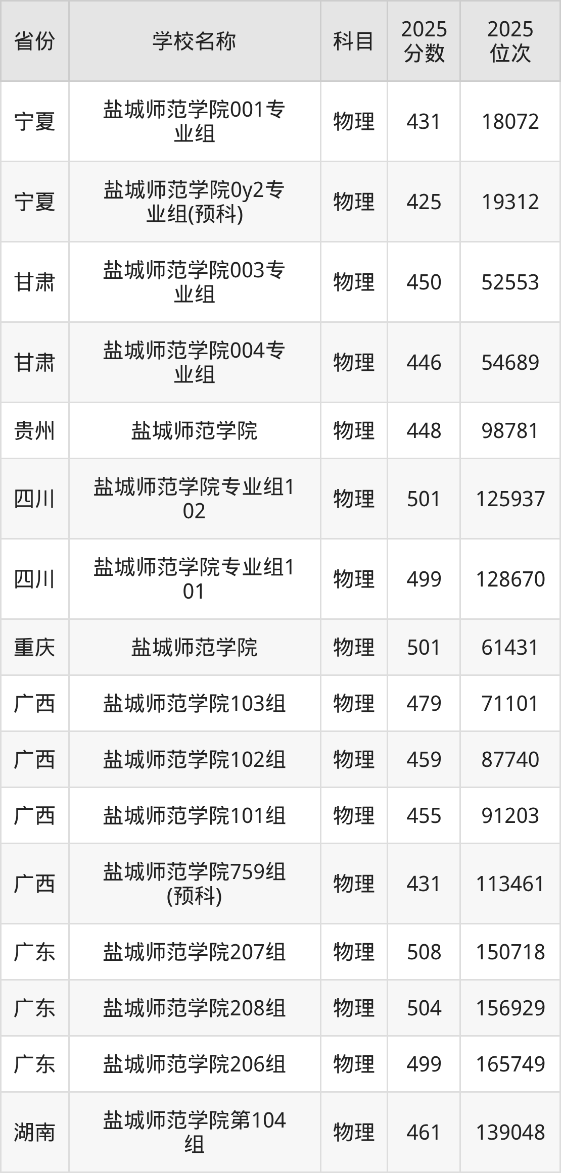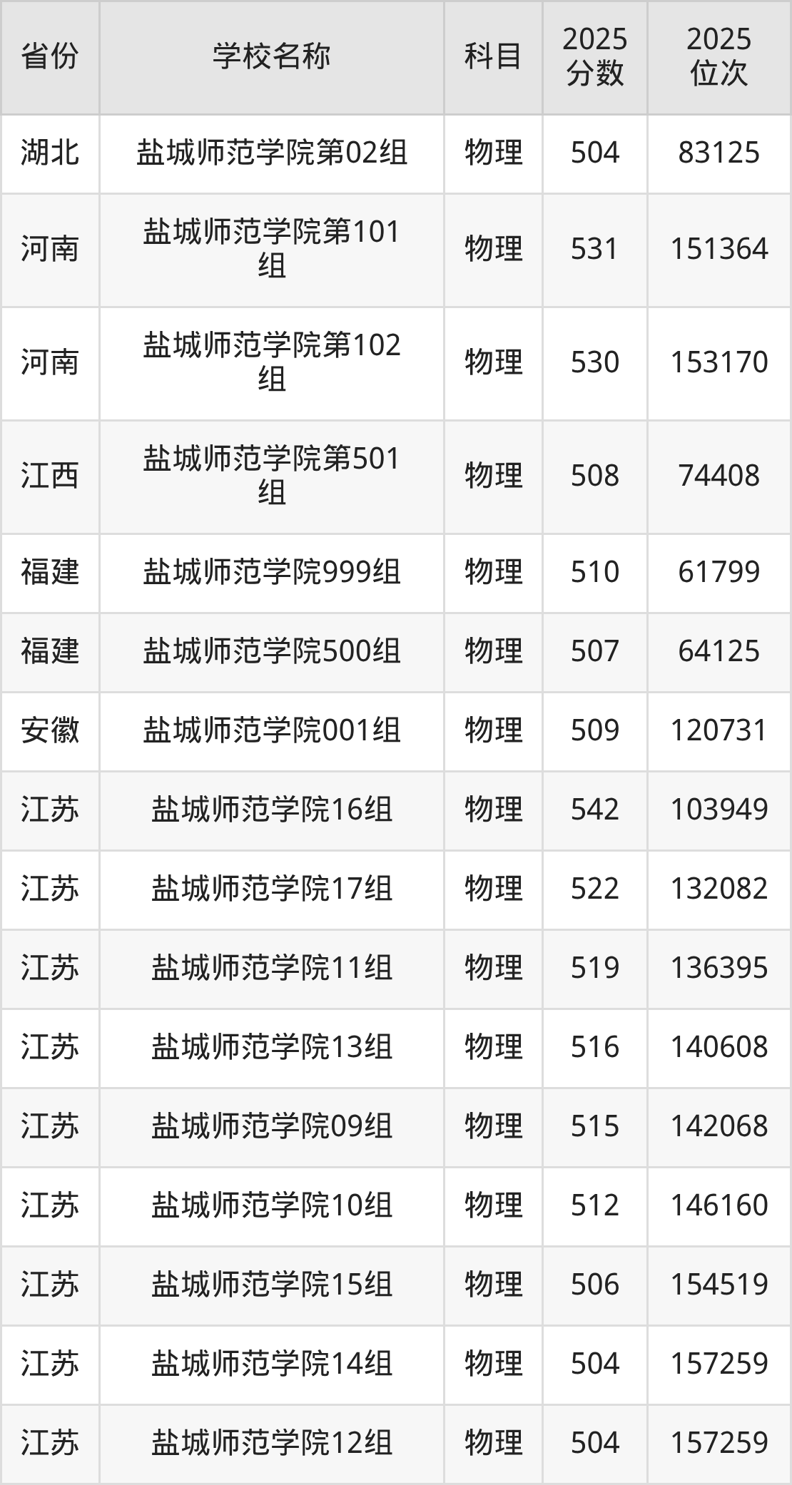 盐城师范学院2025年有12个专业组面向江苏省内首选了物理科目的考生招生: