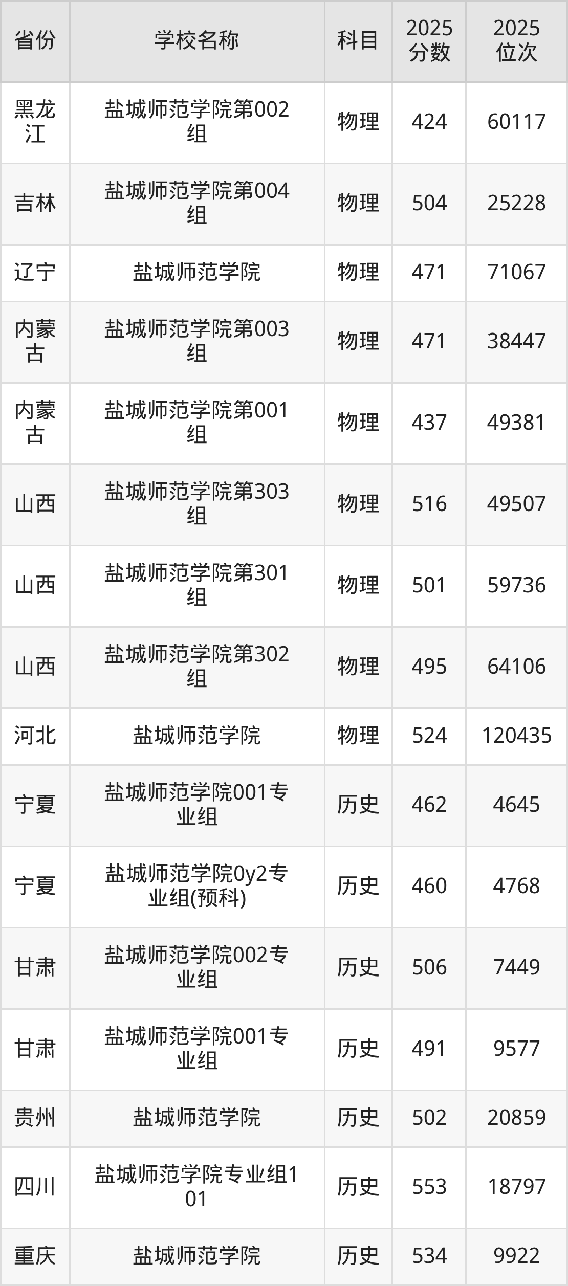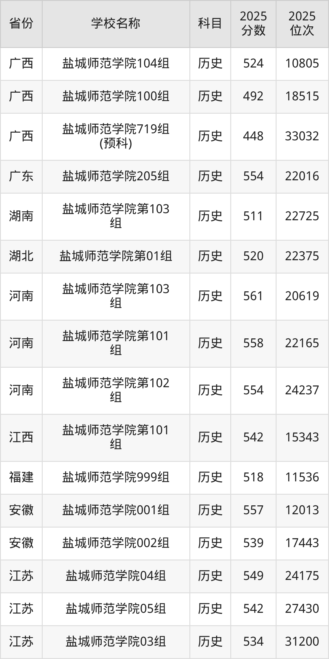 二、盐城师范学院各专业录取分数线