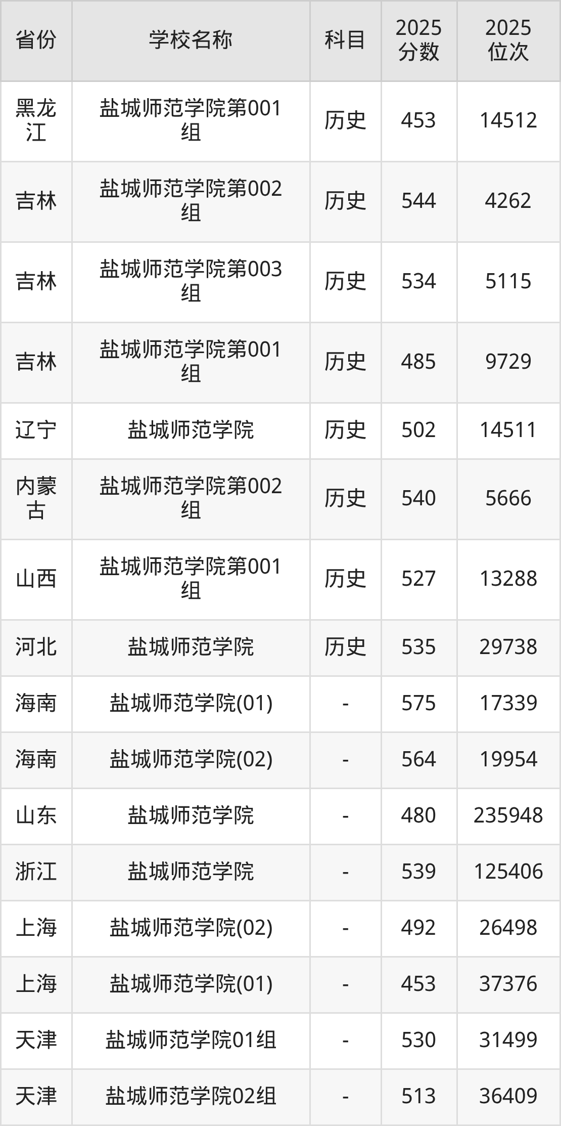一、2025盐城师范学院录取分数线