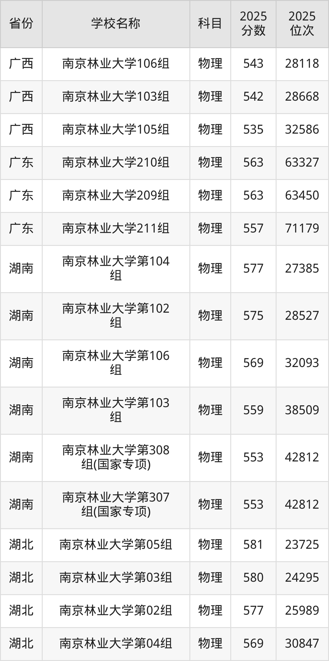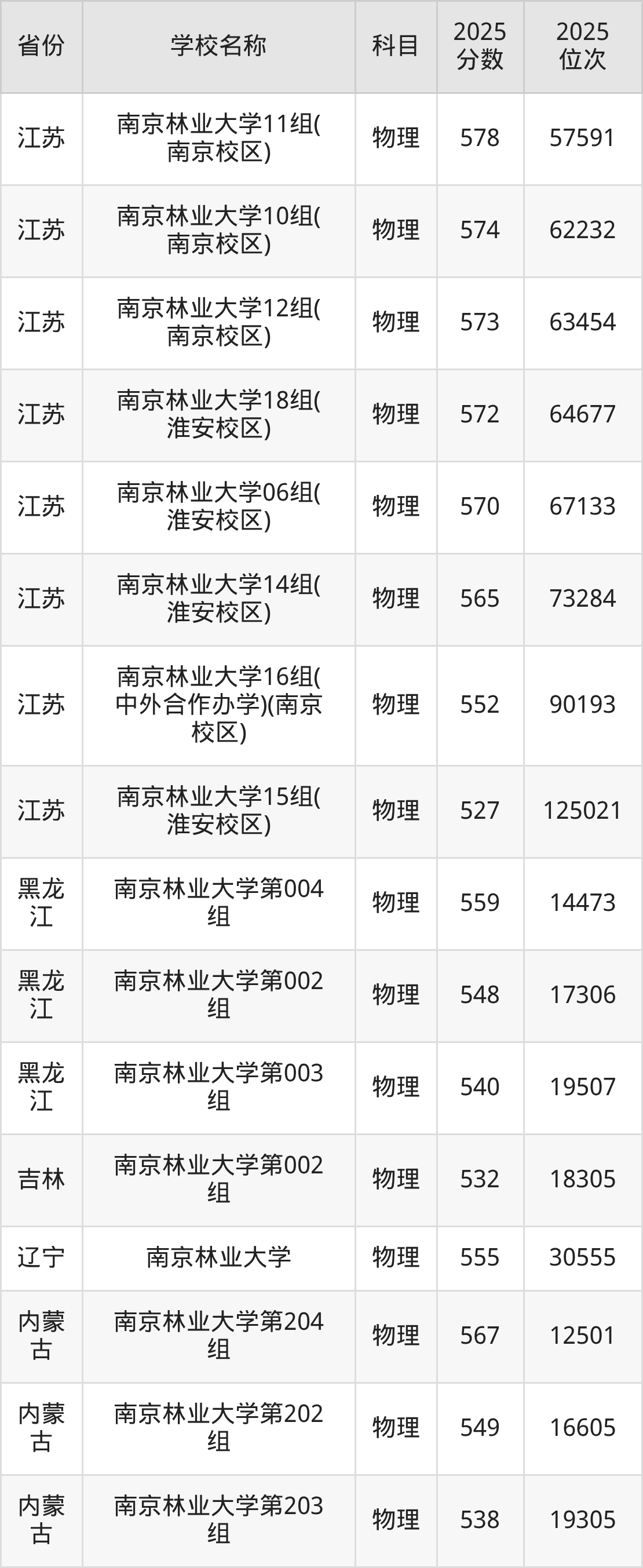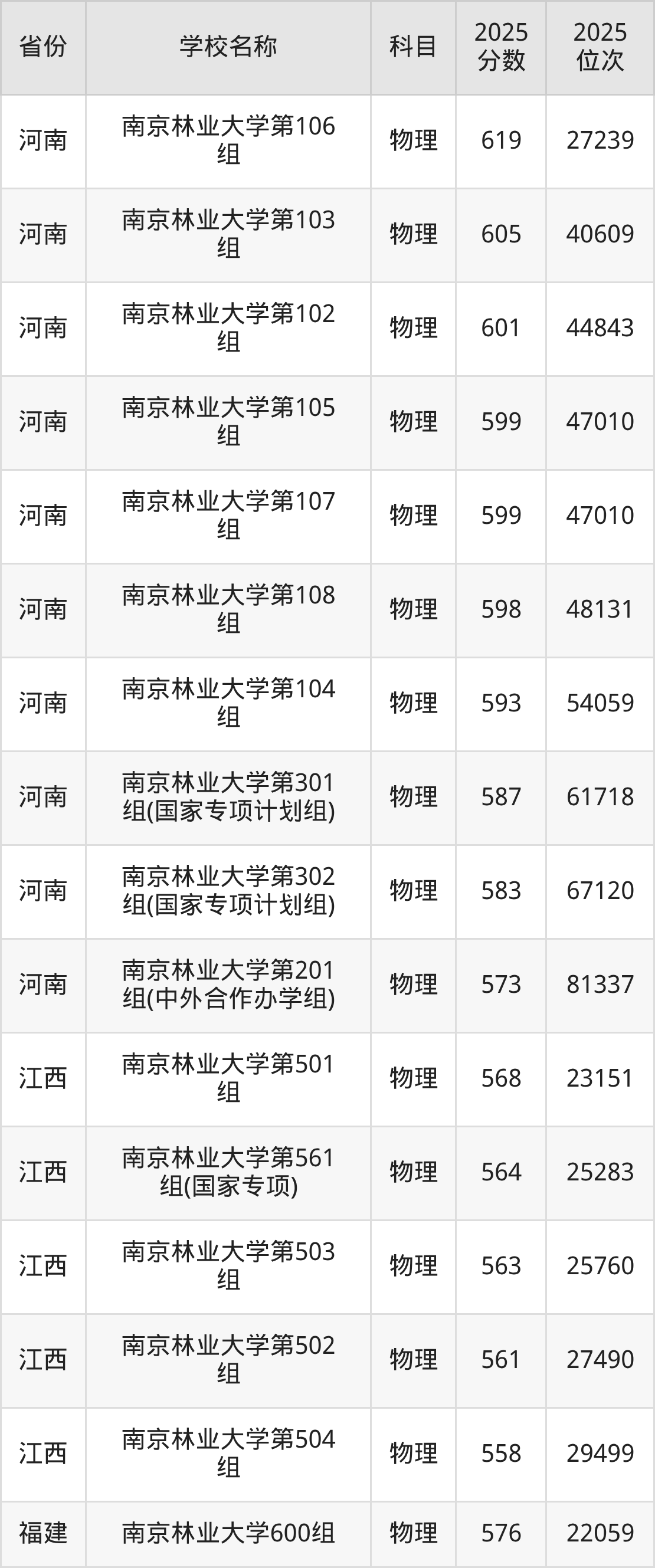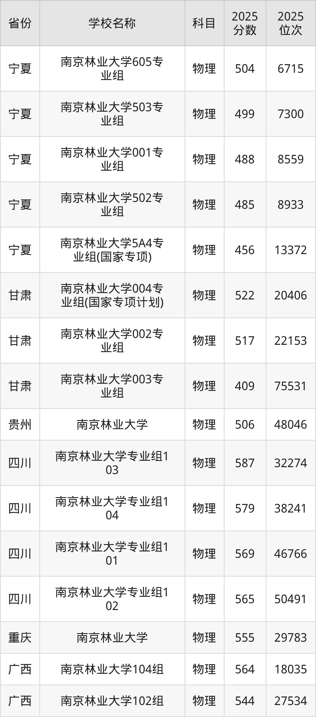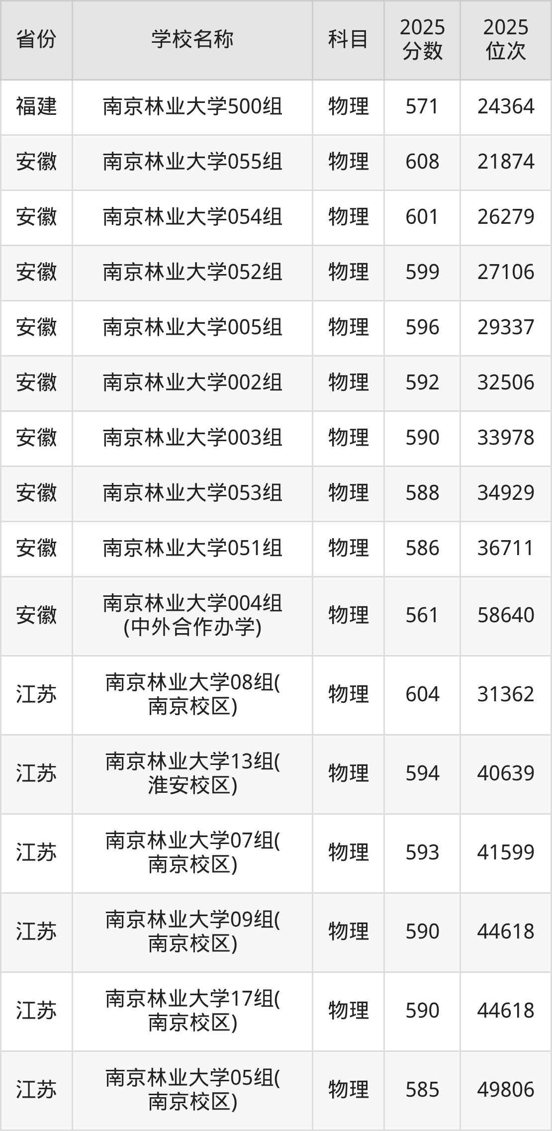 南京林业大学2025年有16个专业组面向江苏省内首选了物理科目的考生招生: