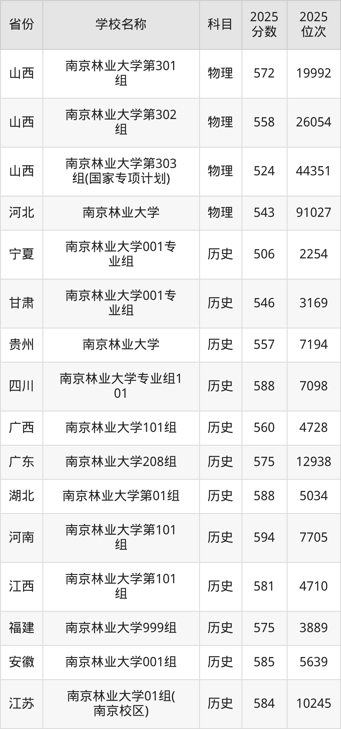 南京林业大学2025年有2个专业组面向江苏省内首选了历史科目的考生招生: