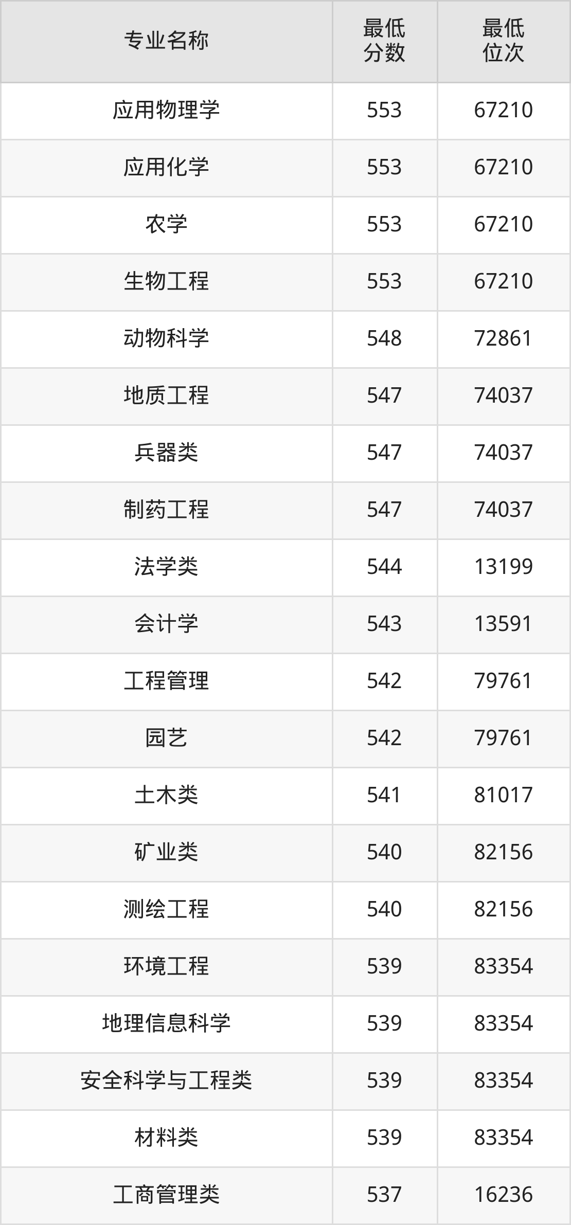 | 四川 | 理科本科一批 | —— | 553/532/523 |