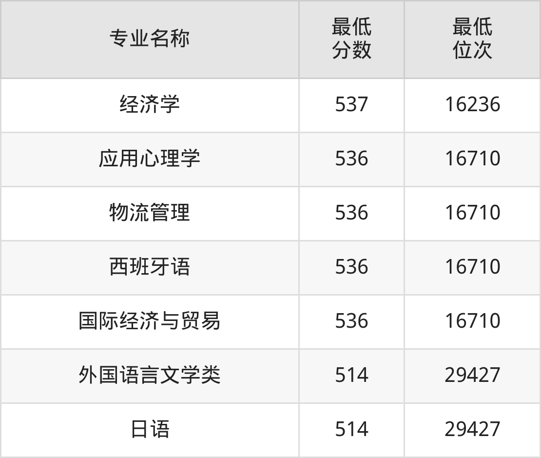 | 四川 | 文科本科一批 | —— | 536/537/543 |