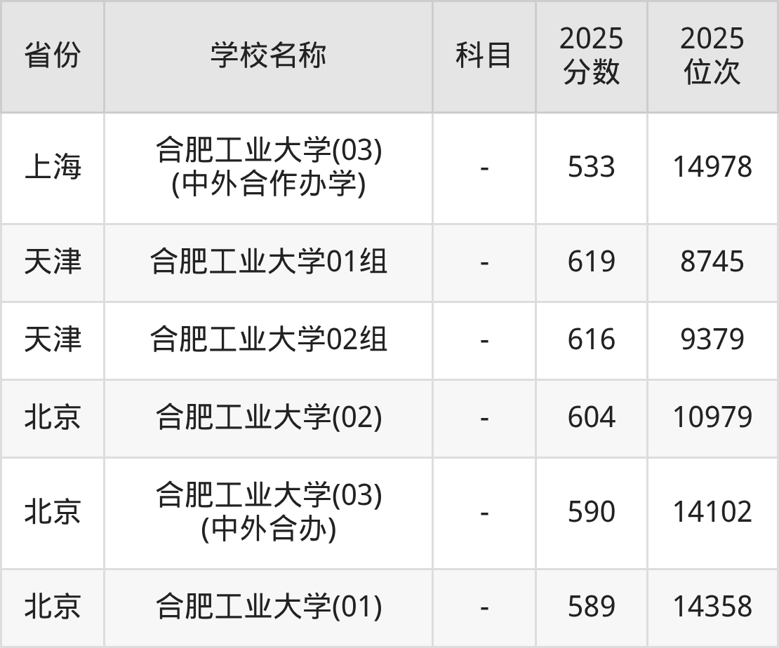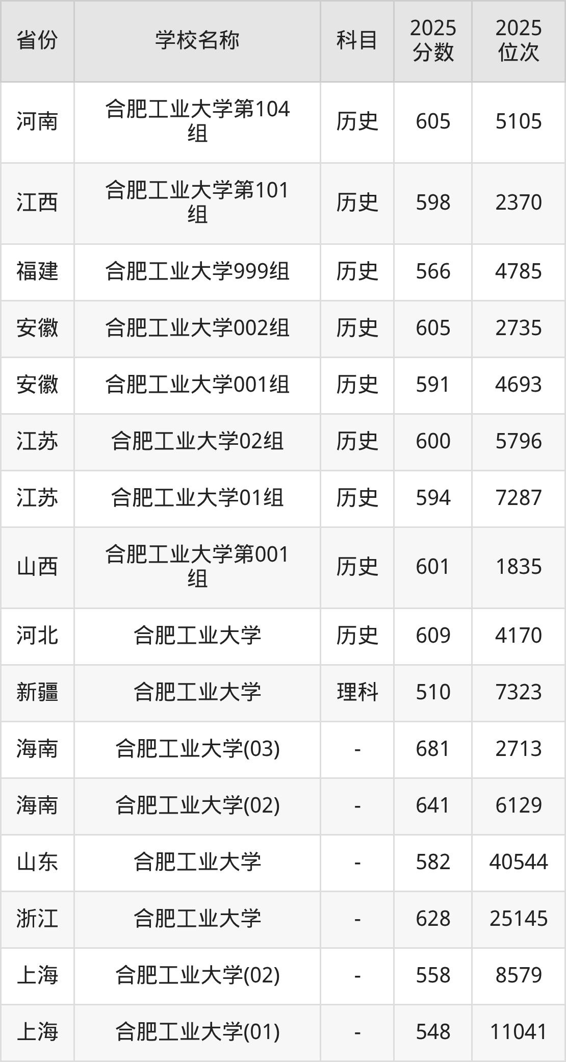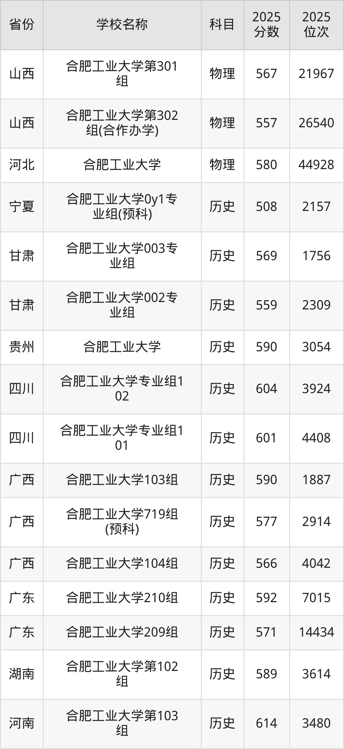 合肥工业大学2025年有2个专业组面向安徽省内首选了历史科目的考生招生:
