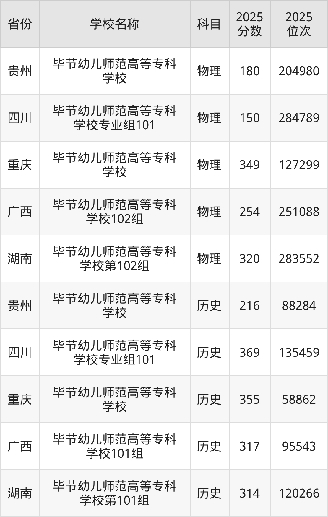 一、2025毕节幼儿师范高等专科学校录取分数线