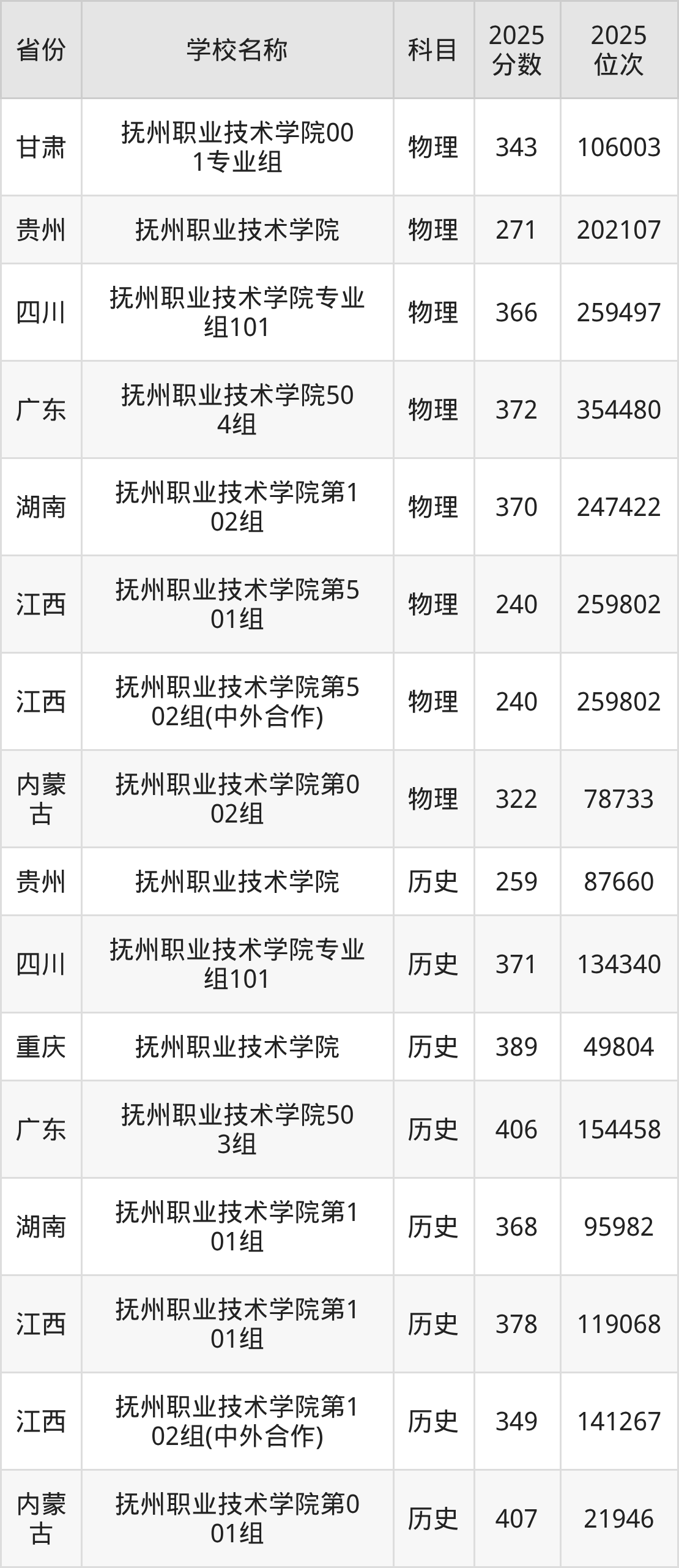 一、2025抚州职业技术学院录取分数线