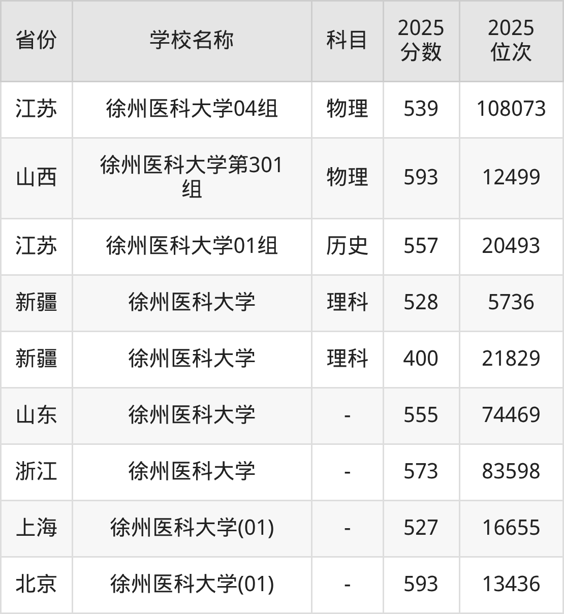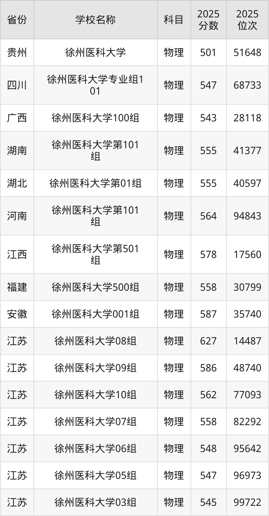 徐州医科大学2025年有9个专业组面向江苏省内首选了物理科目的考生招生: