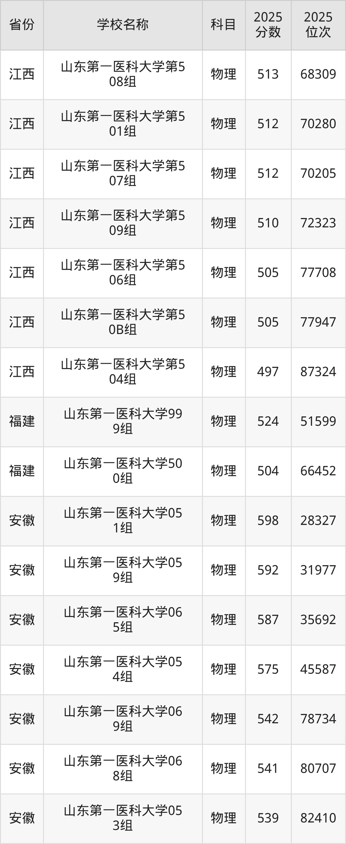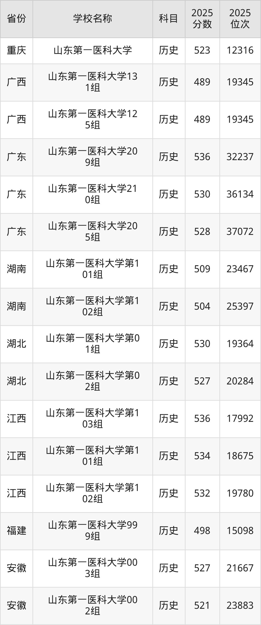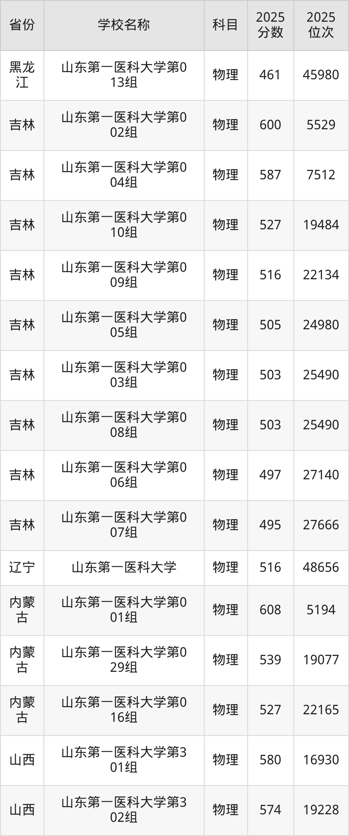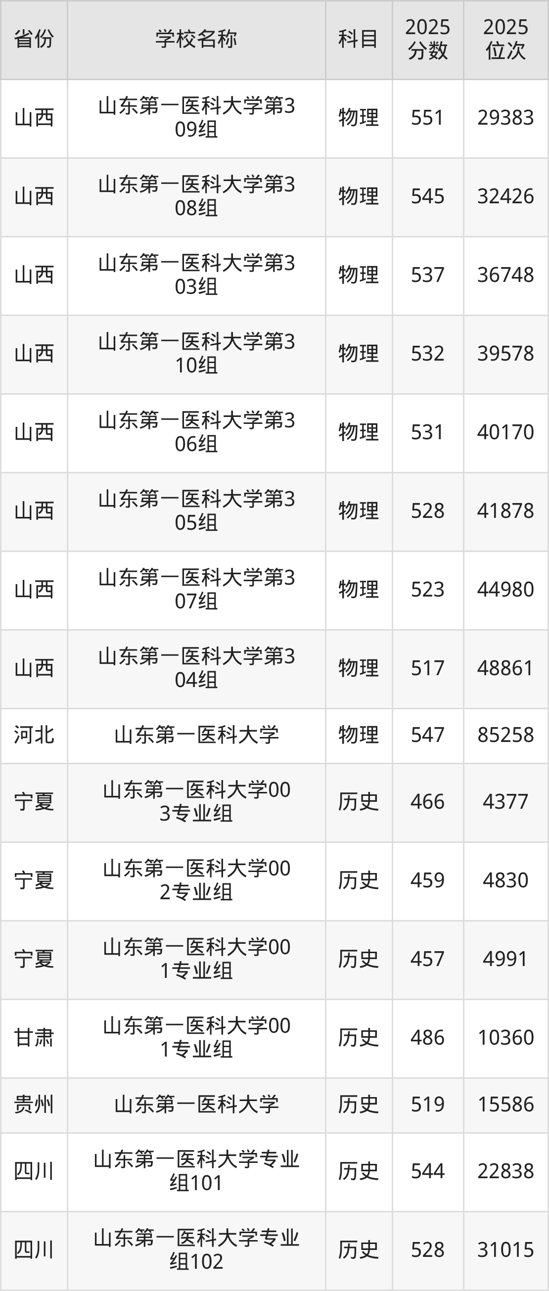二、山东第一医科大学各专业录取分数线