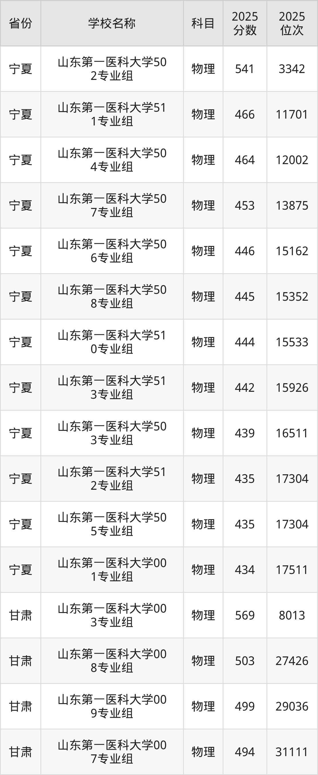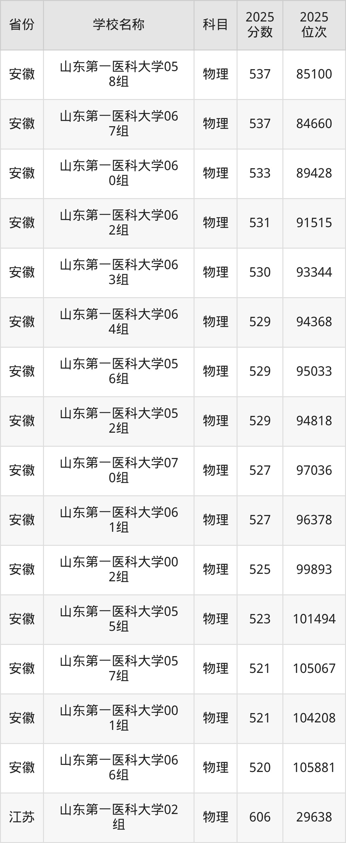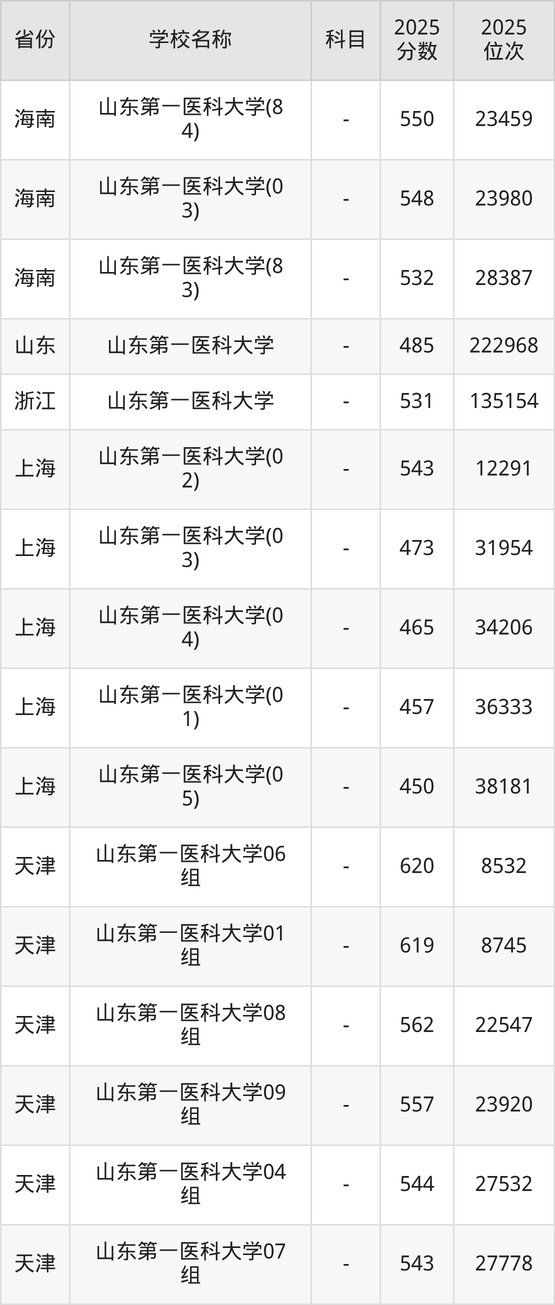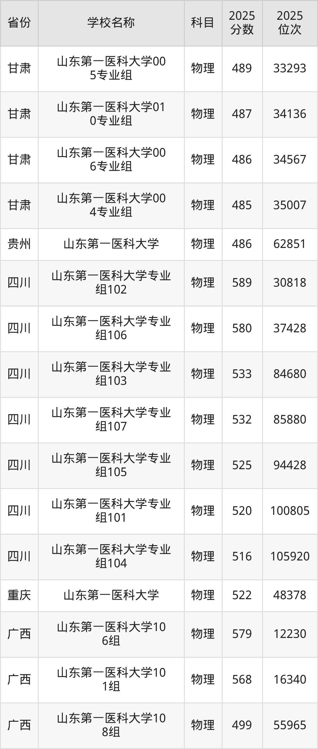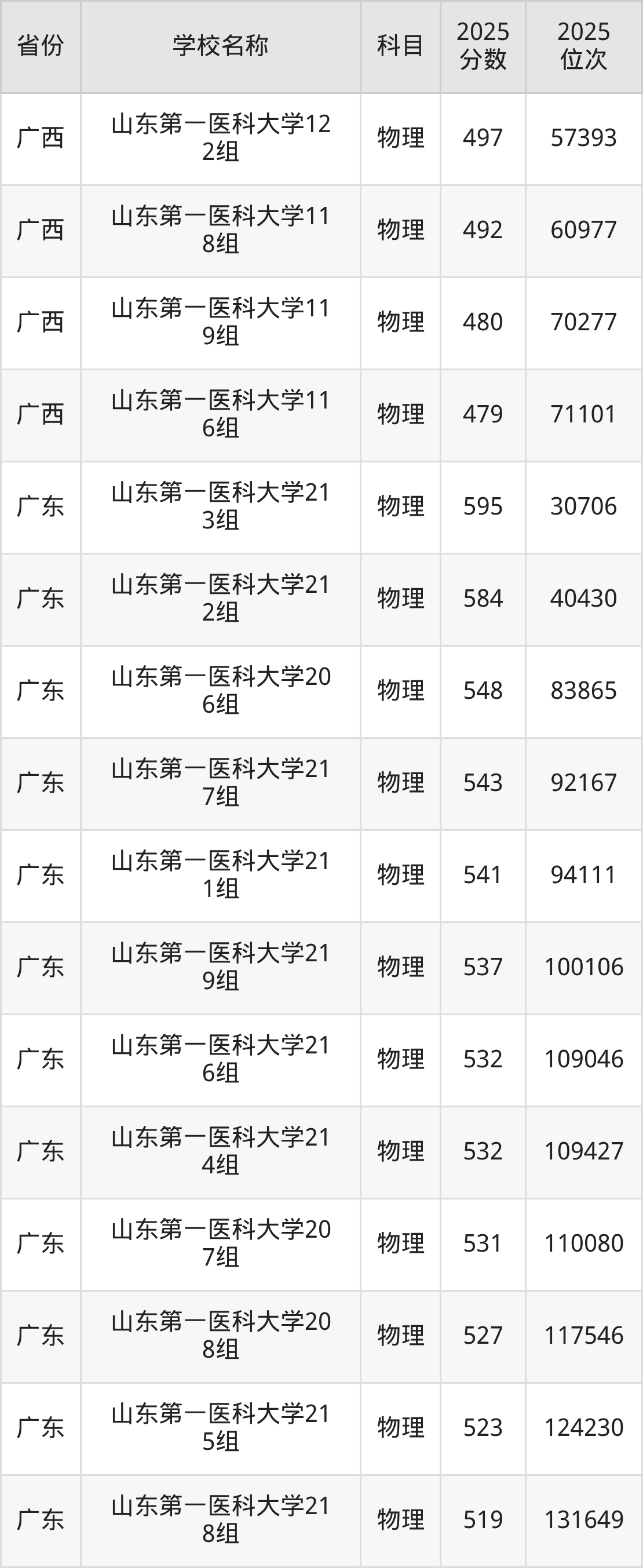 二、山东第一医科大学各专业录取分数线