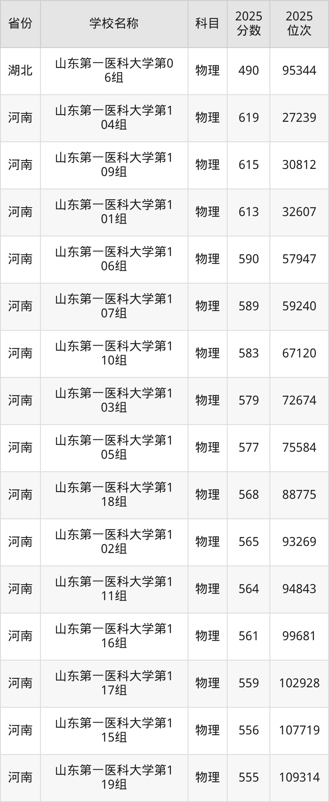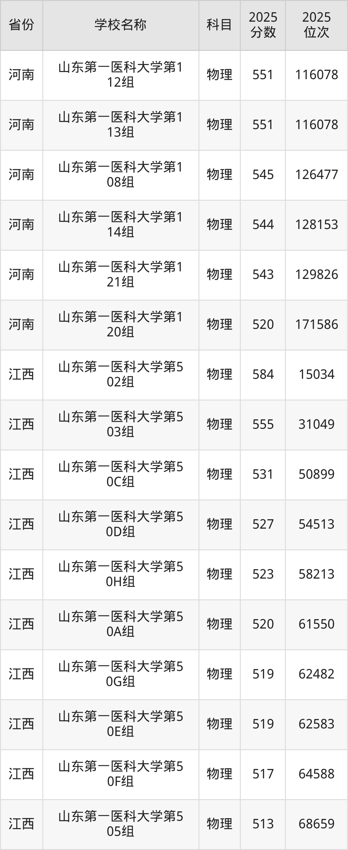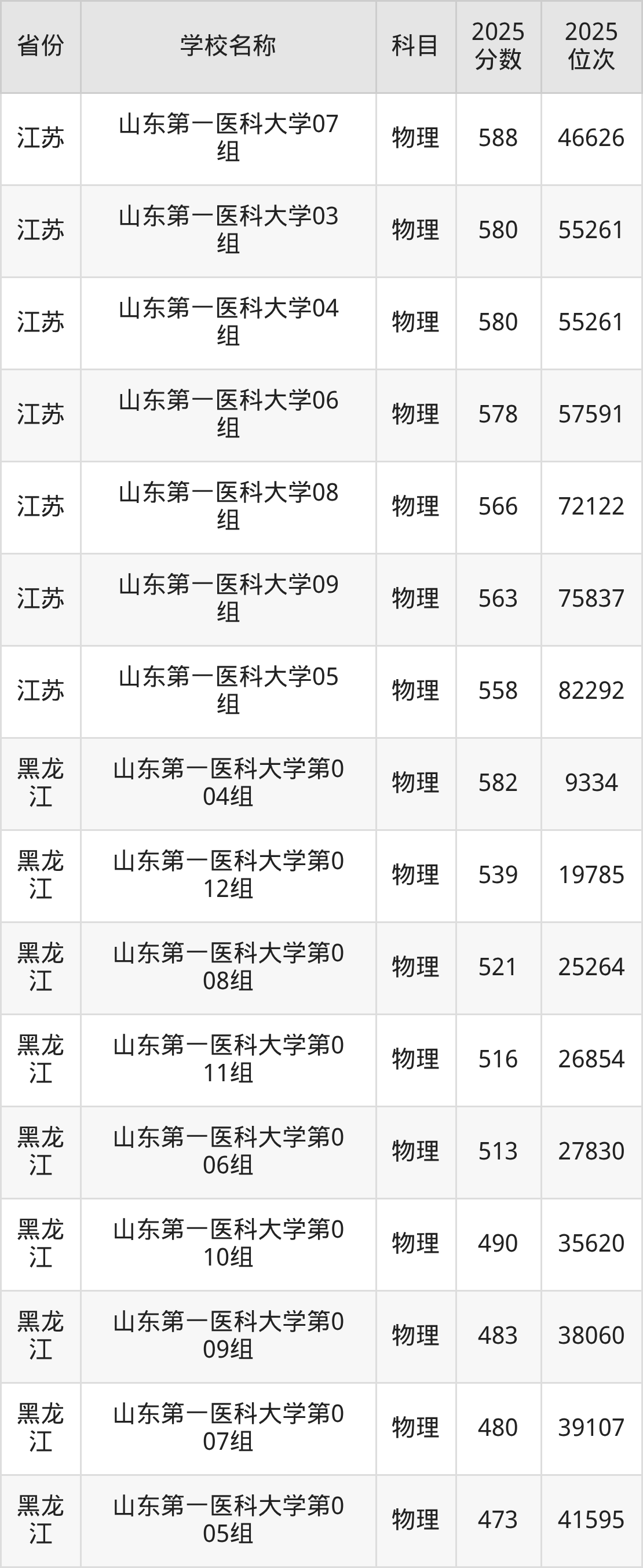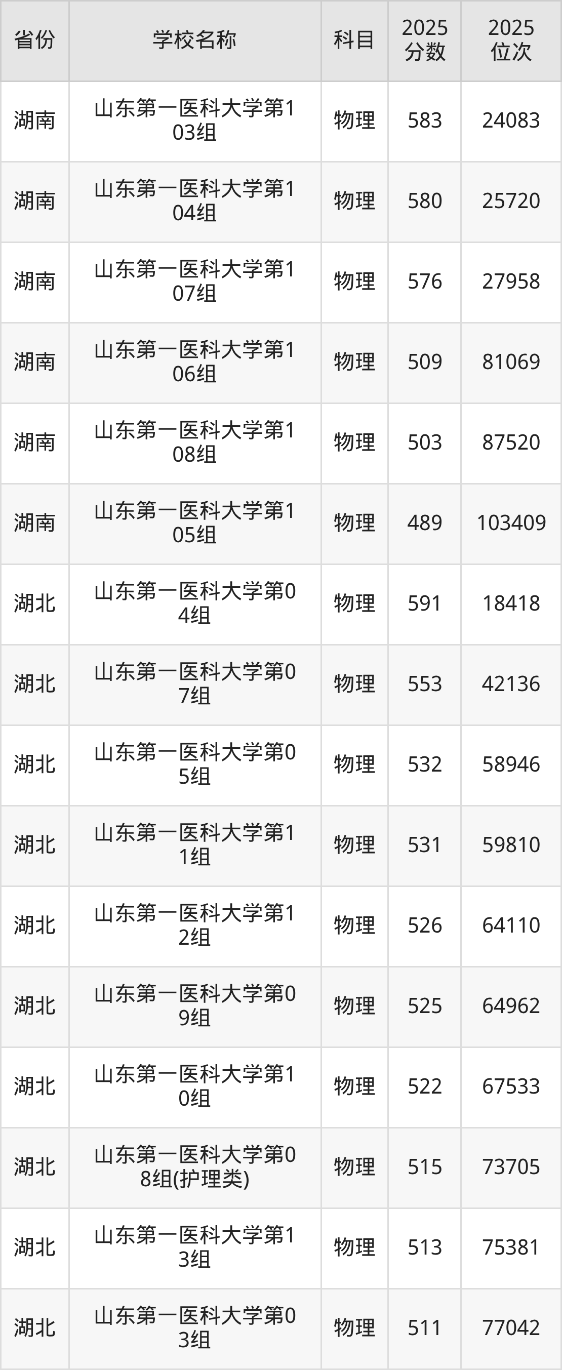 二、山东第一医科大学各专业录取分数线