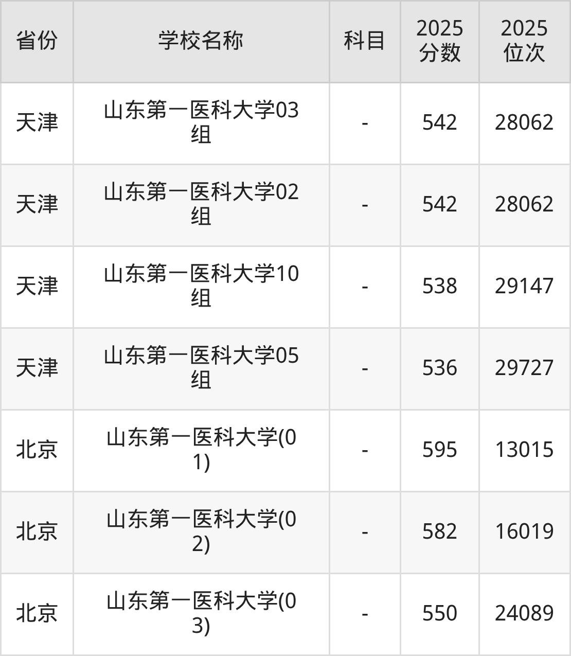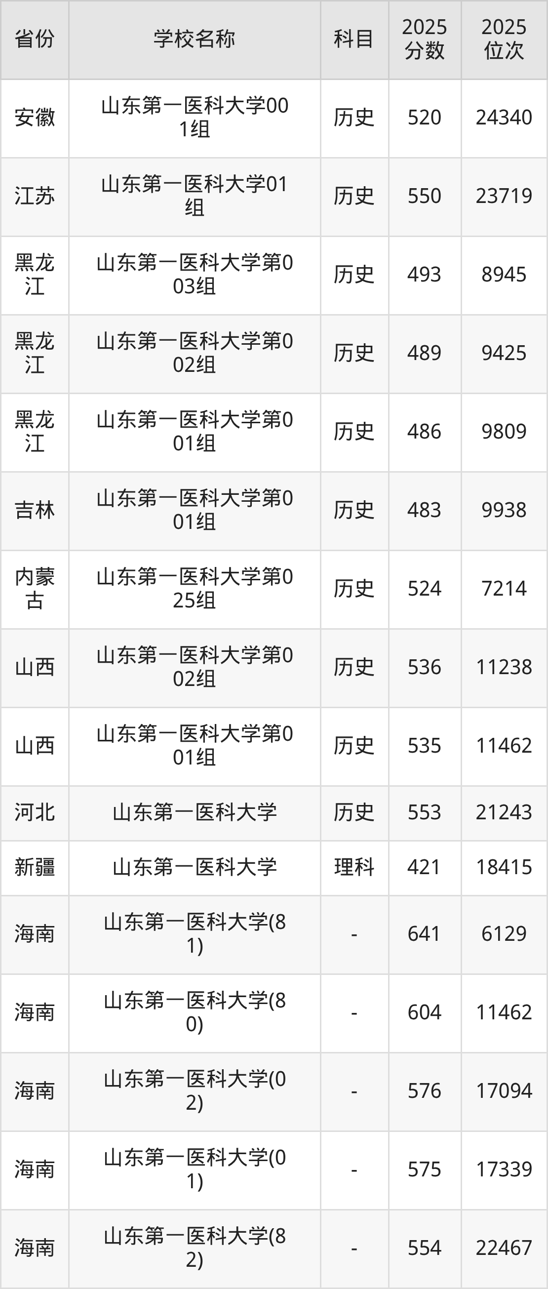 一、2025山东第一医科大学录取分数线