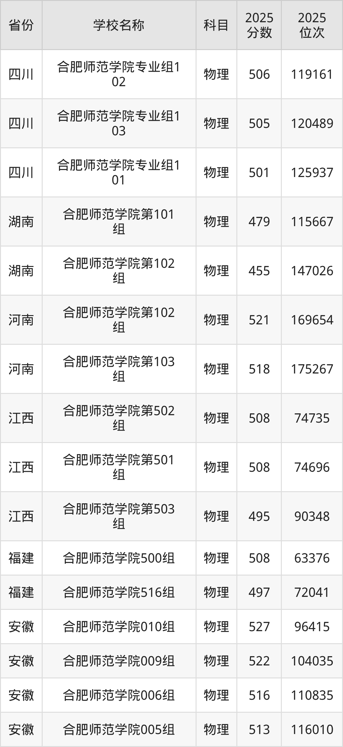 合肥师范学院2025年有7个专业组面向安徽省内首选了物理科目的考生招生: