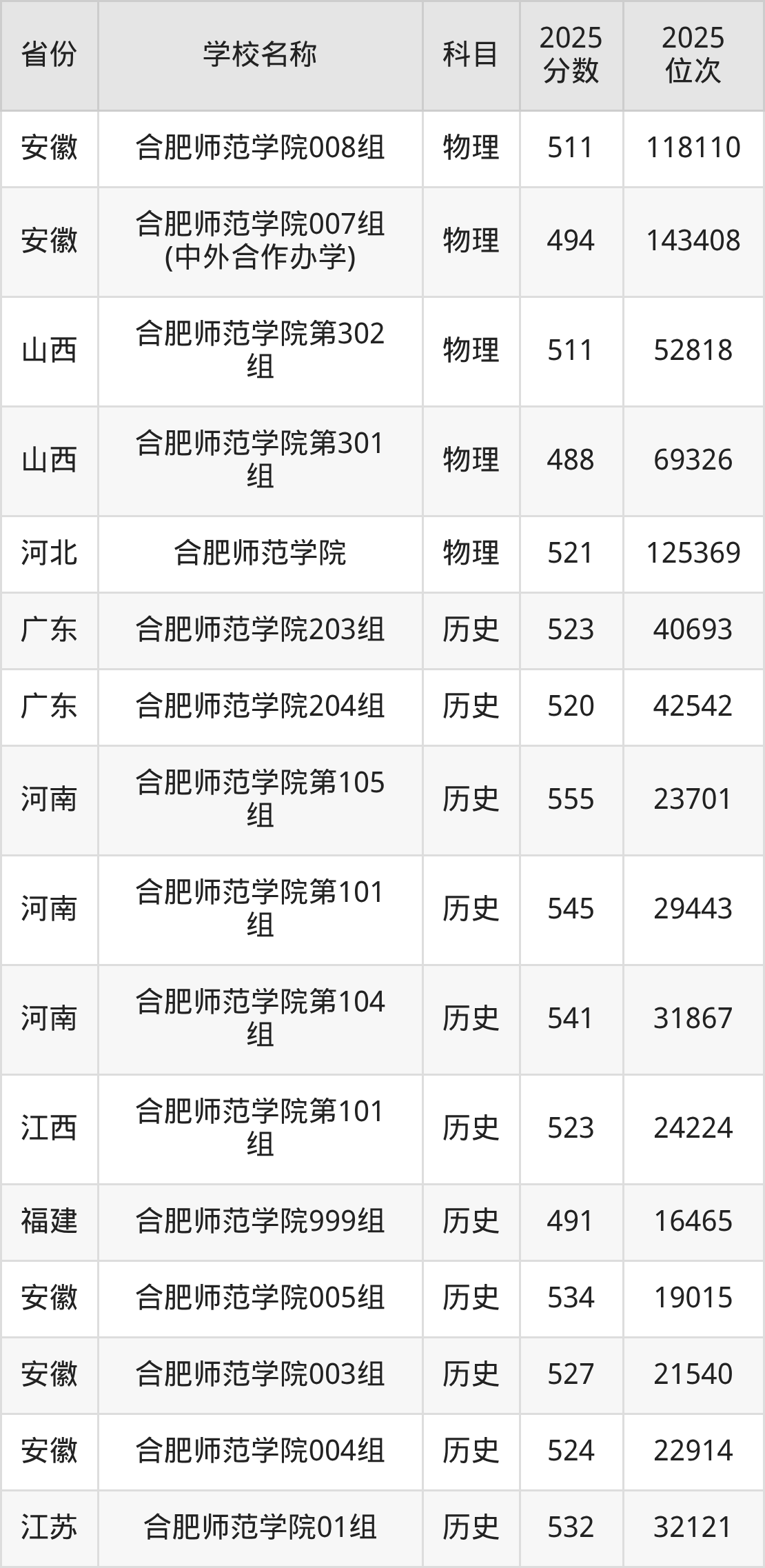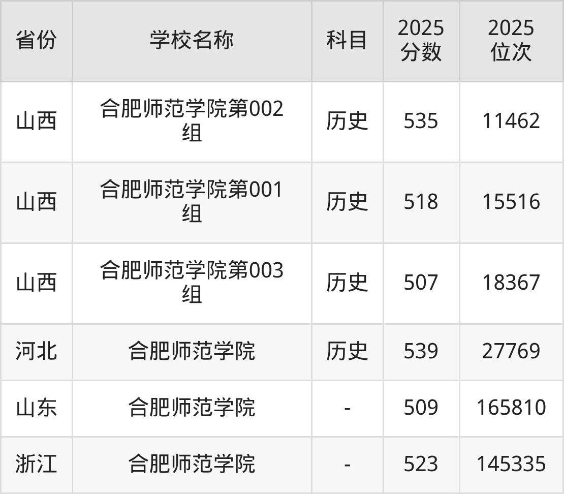 合肥师范学院2025年有4个专业组面向安徽省内首选了历史科目的考生招生: