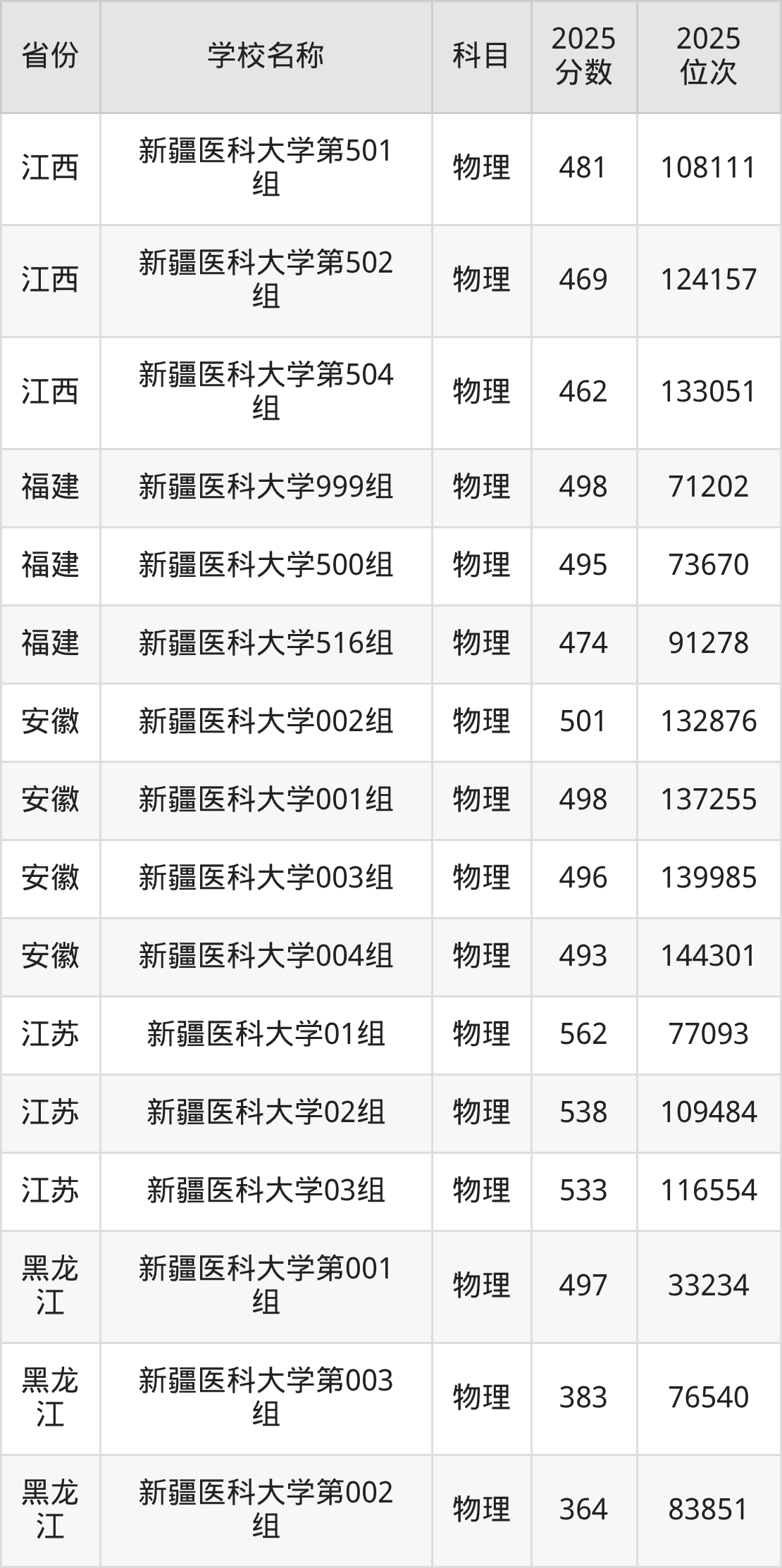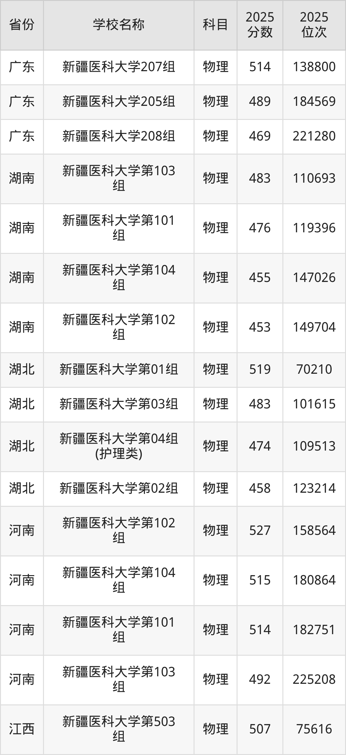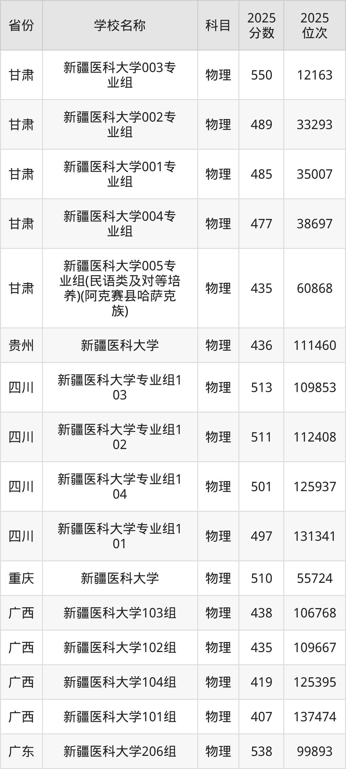 二、新疆医科大学各专业录取分数线