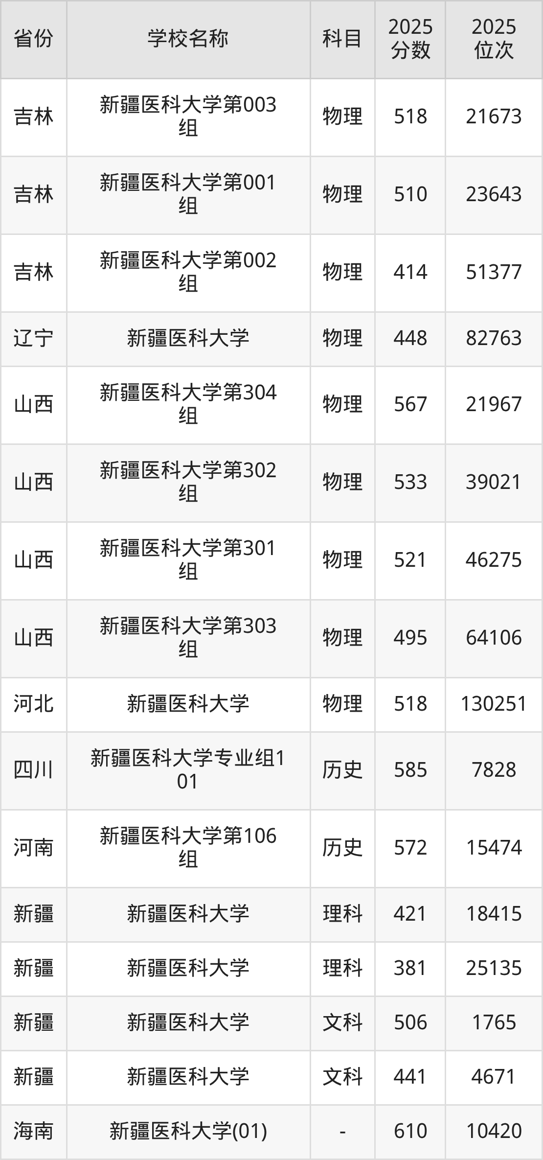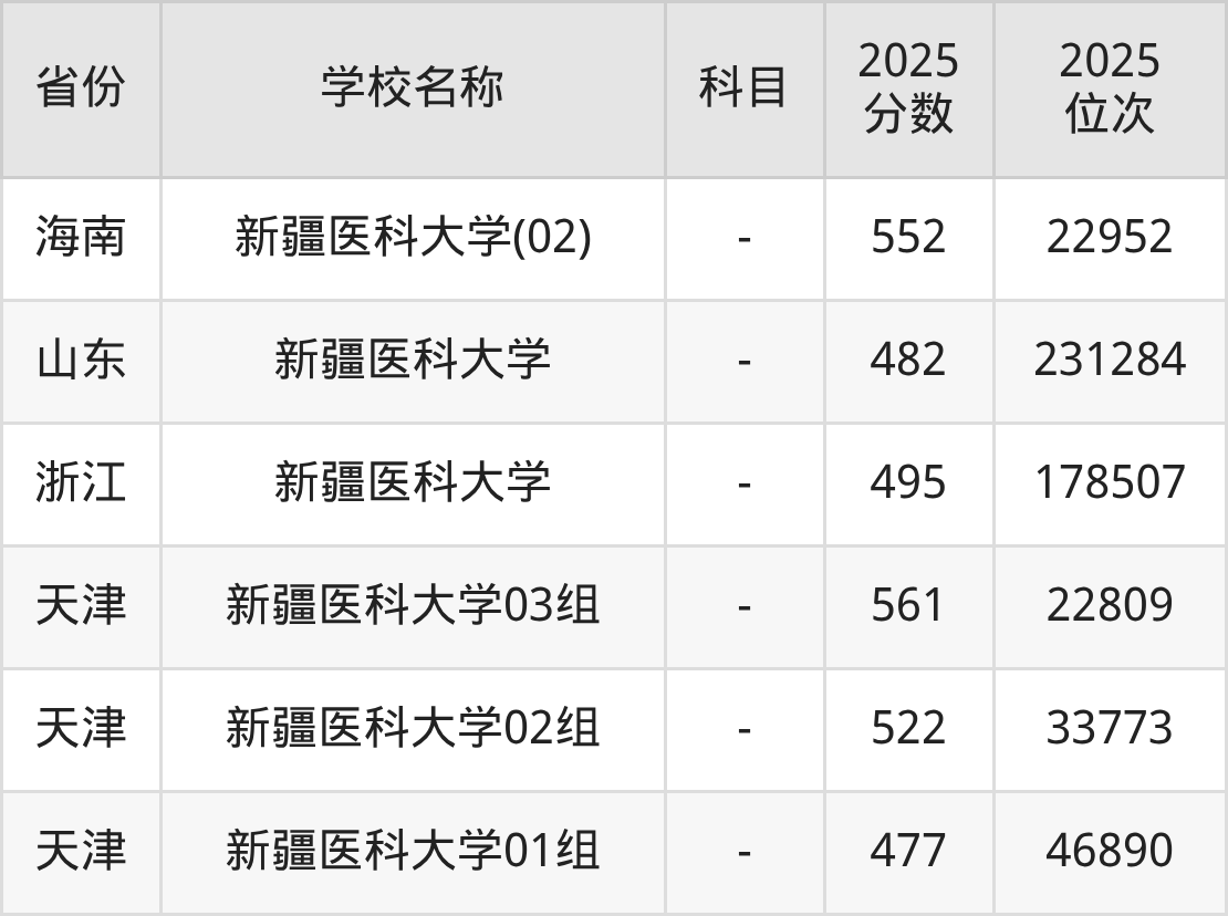 一、2025新疆医科大学录取分数线