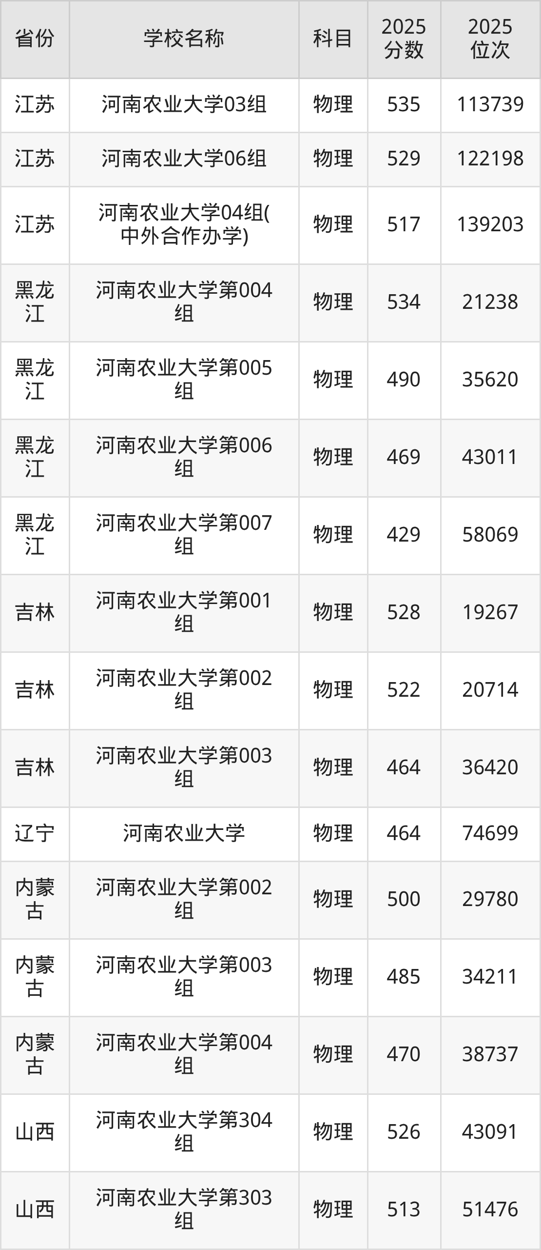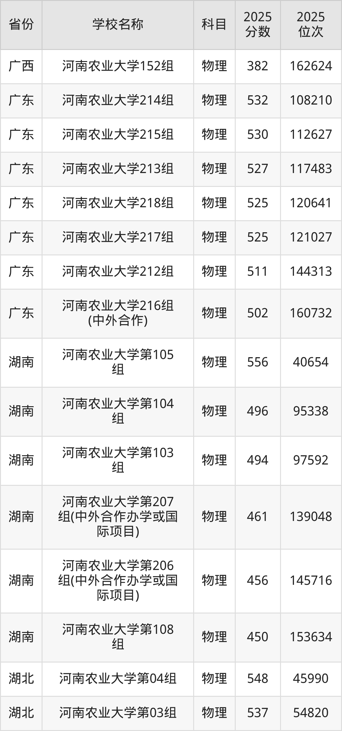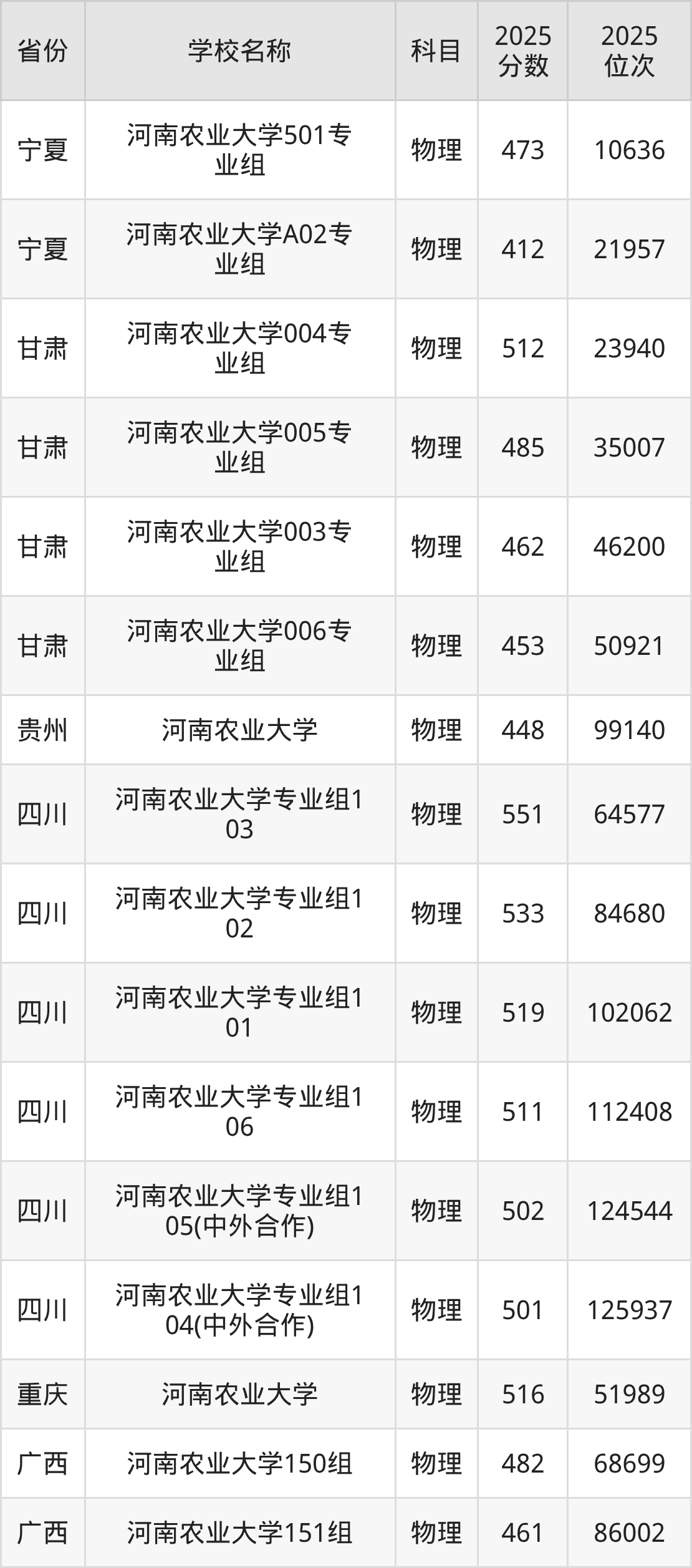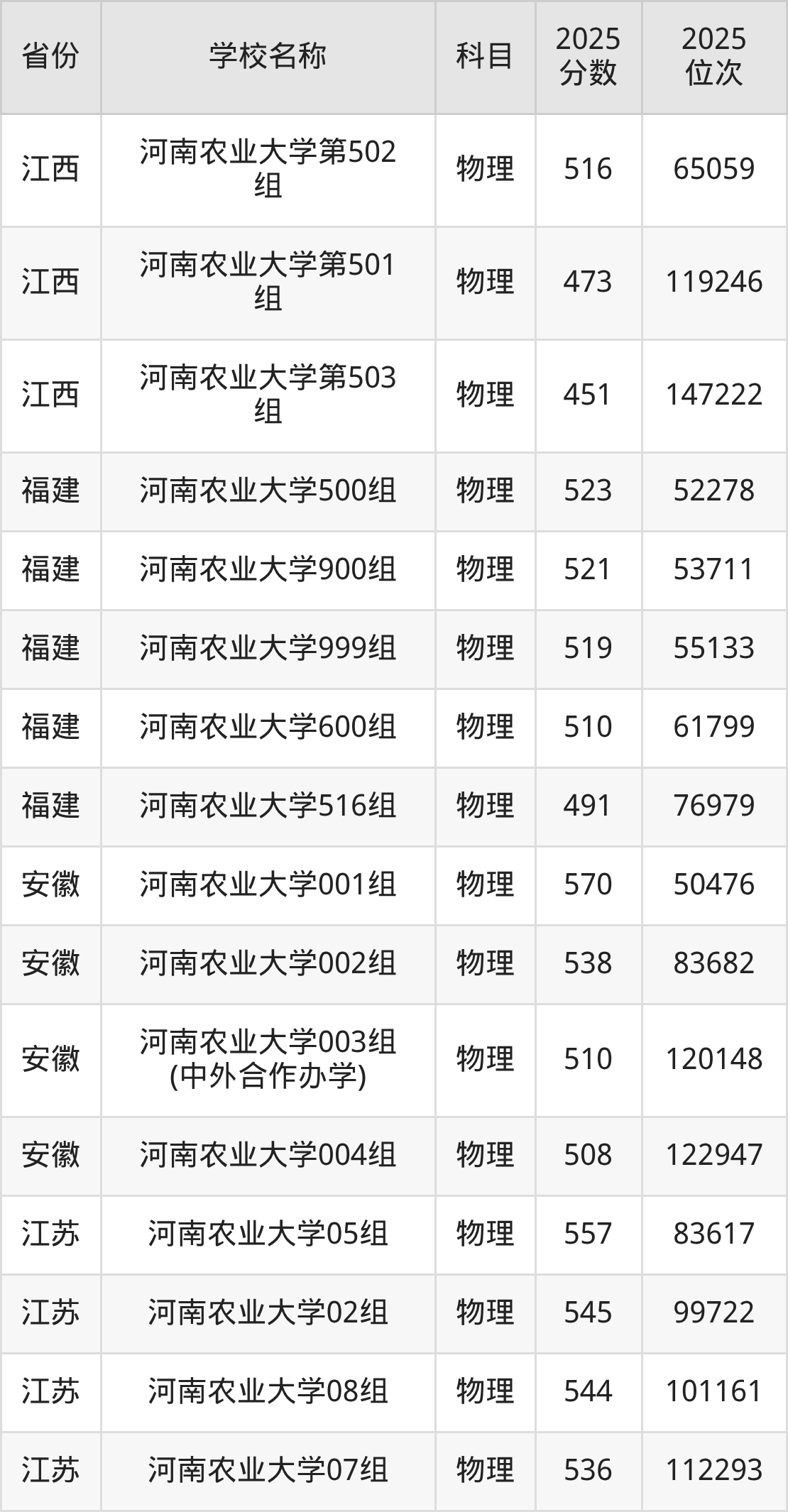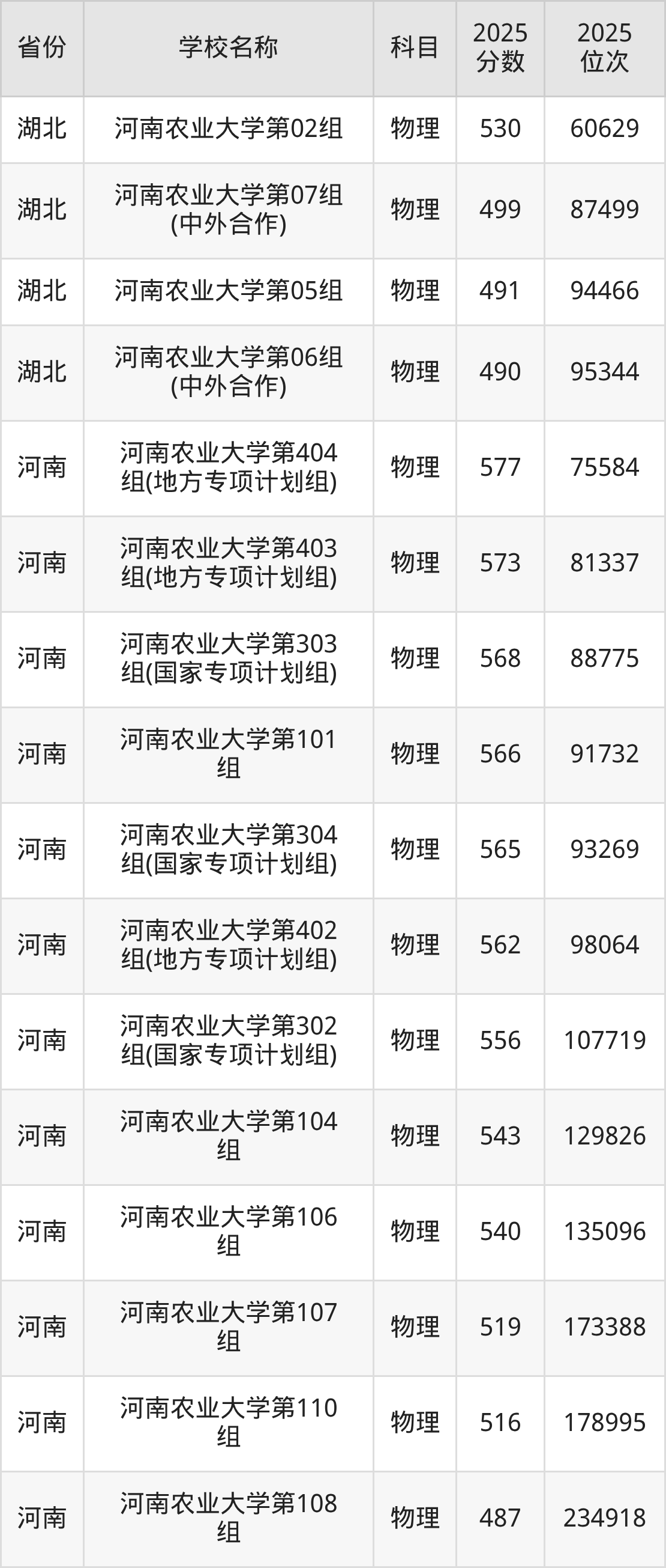河南农业大学2025年有12个专业组面向河南省内首选了物理科目的考生招生: