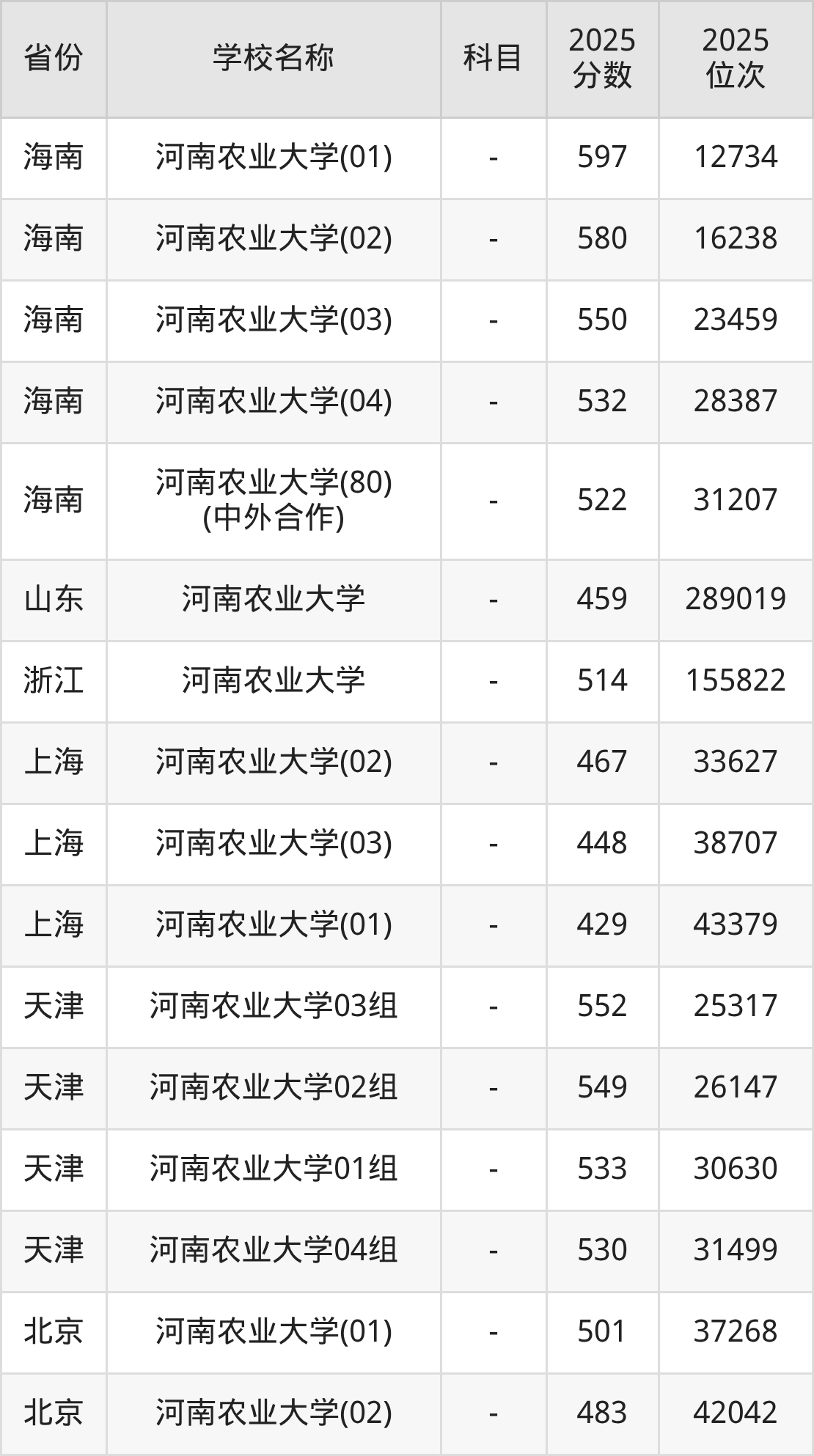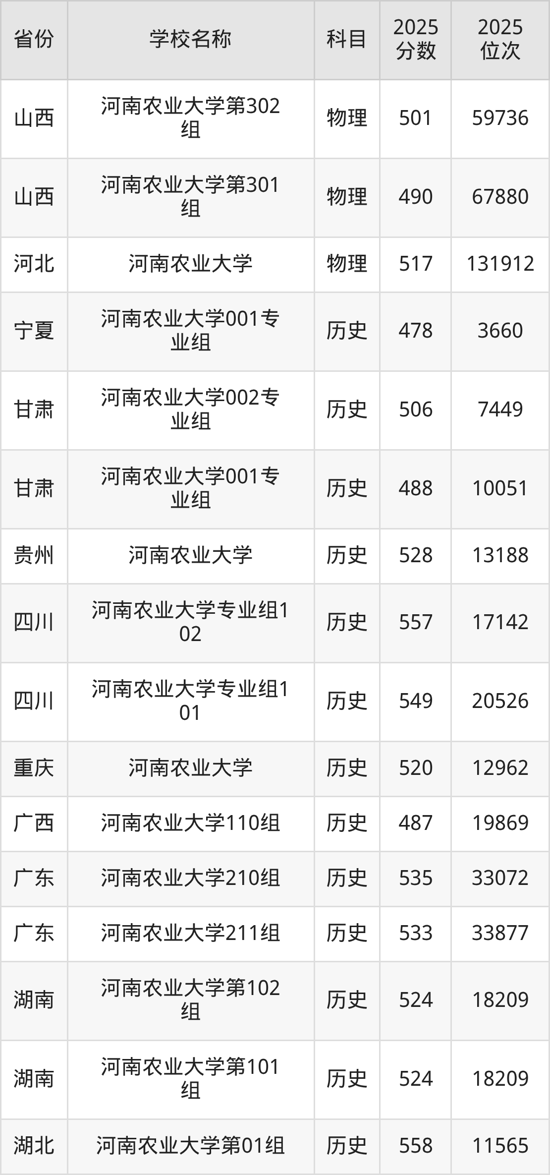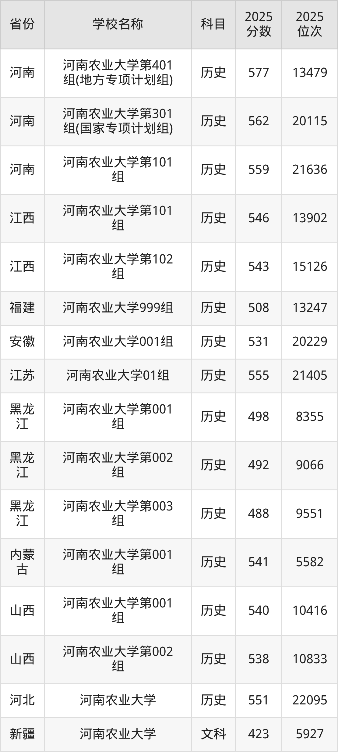 二、河南农业大学各专业录取分数线