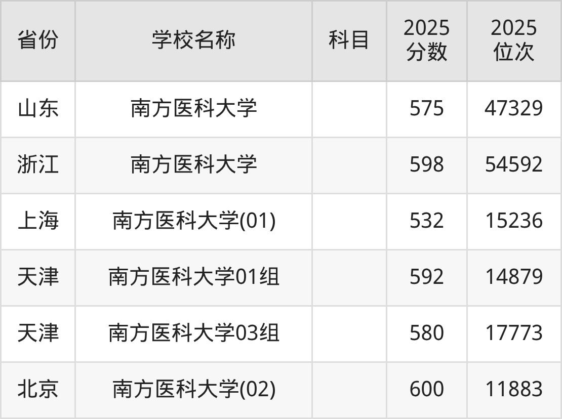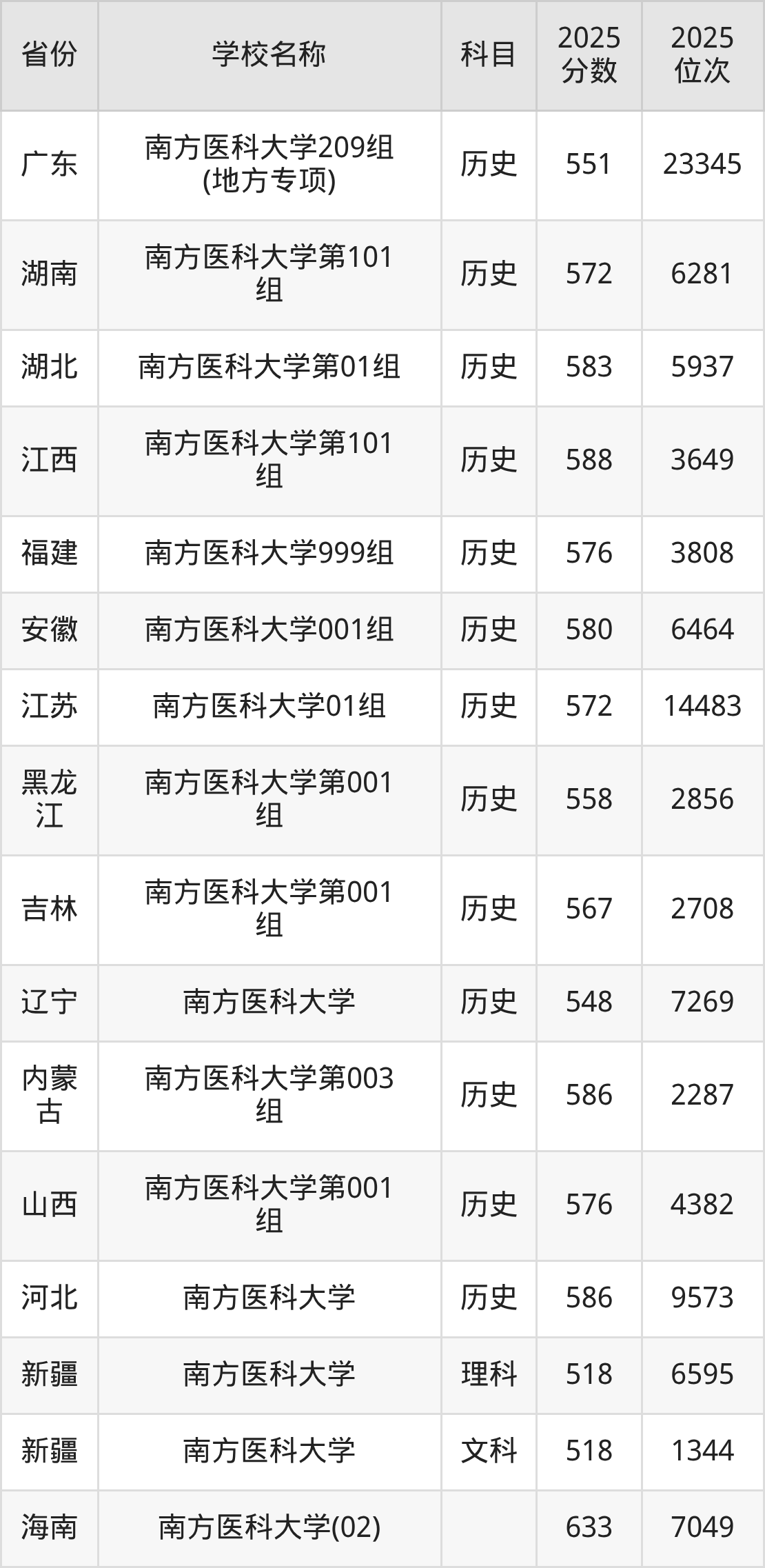 一、2025南方医科大学录取分数线