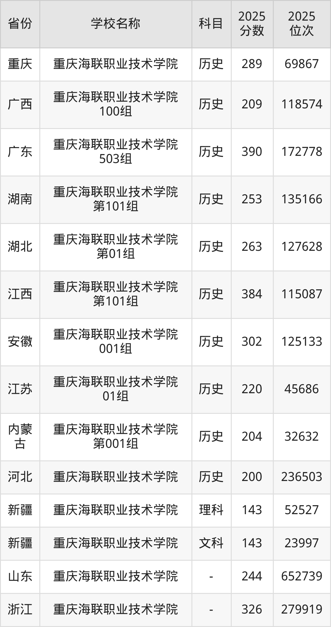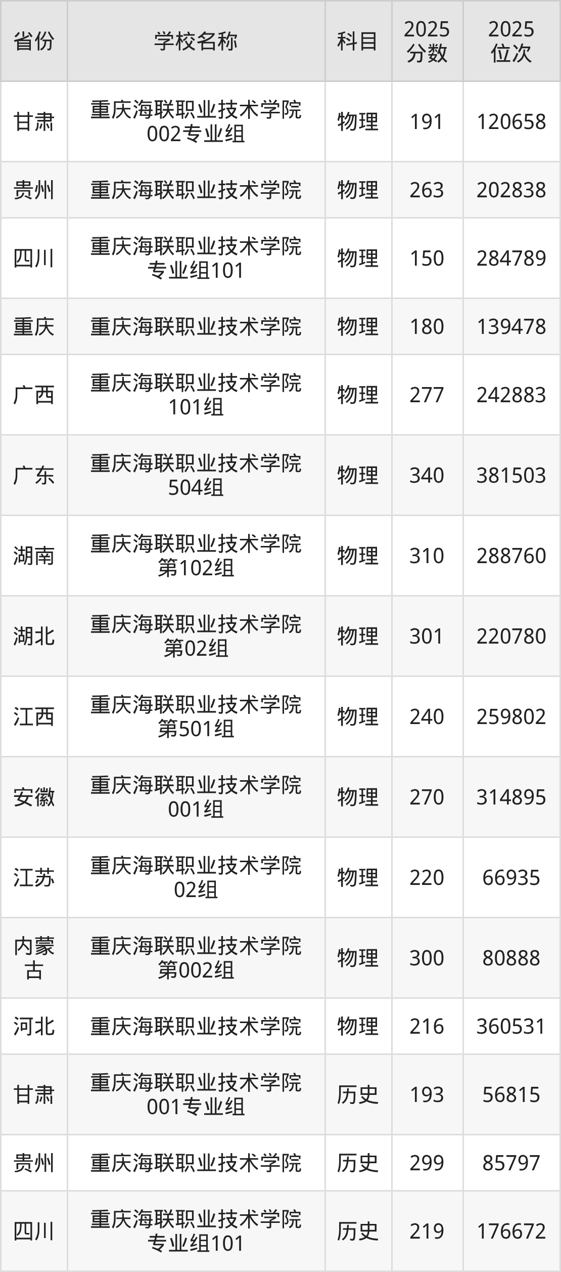 一、2025重庆海联职业技术学院录取分数线