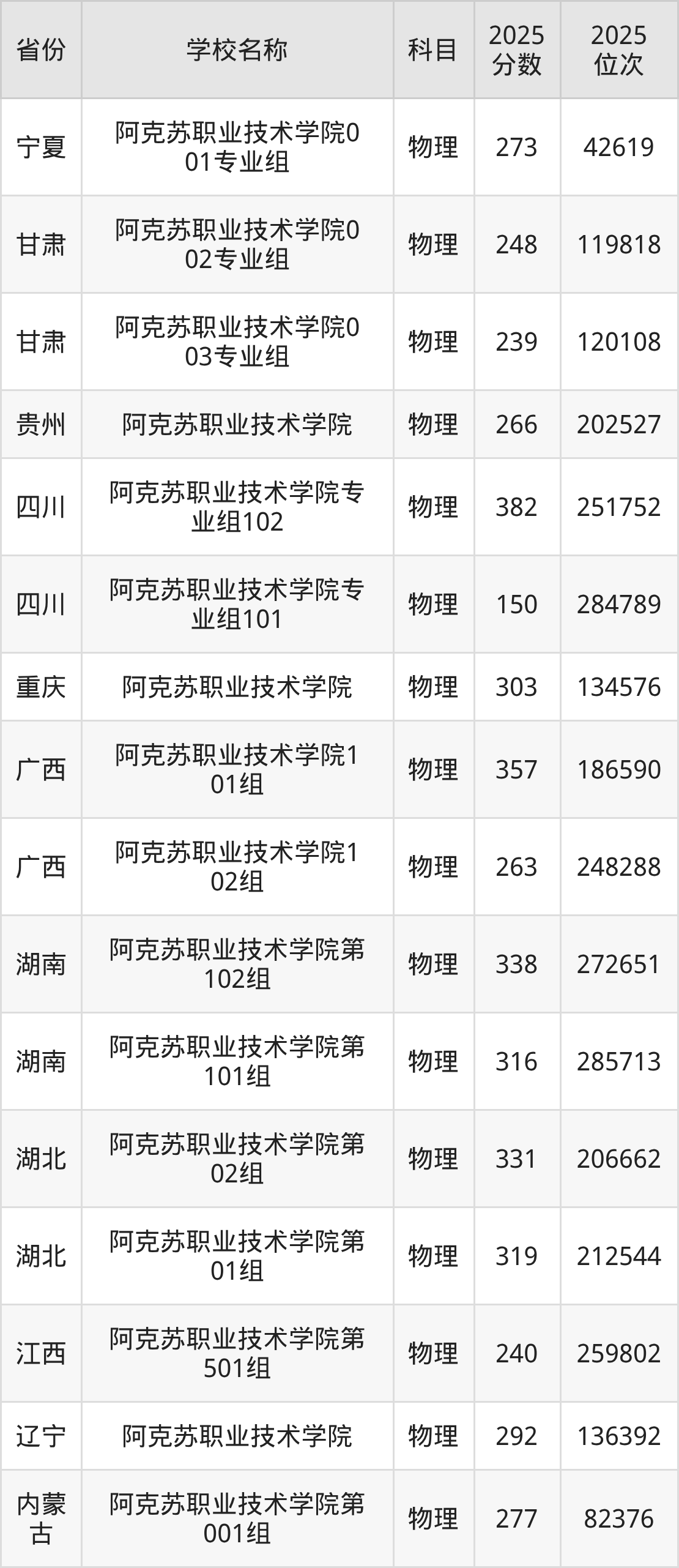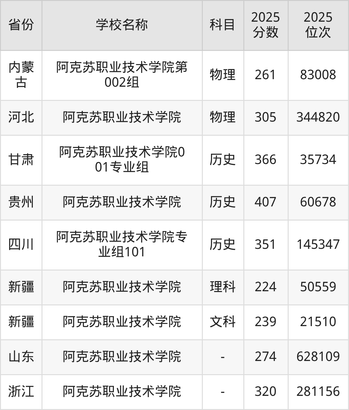 一、2025阿克苏职业技术学院录取分数线