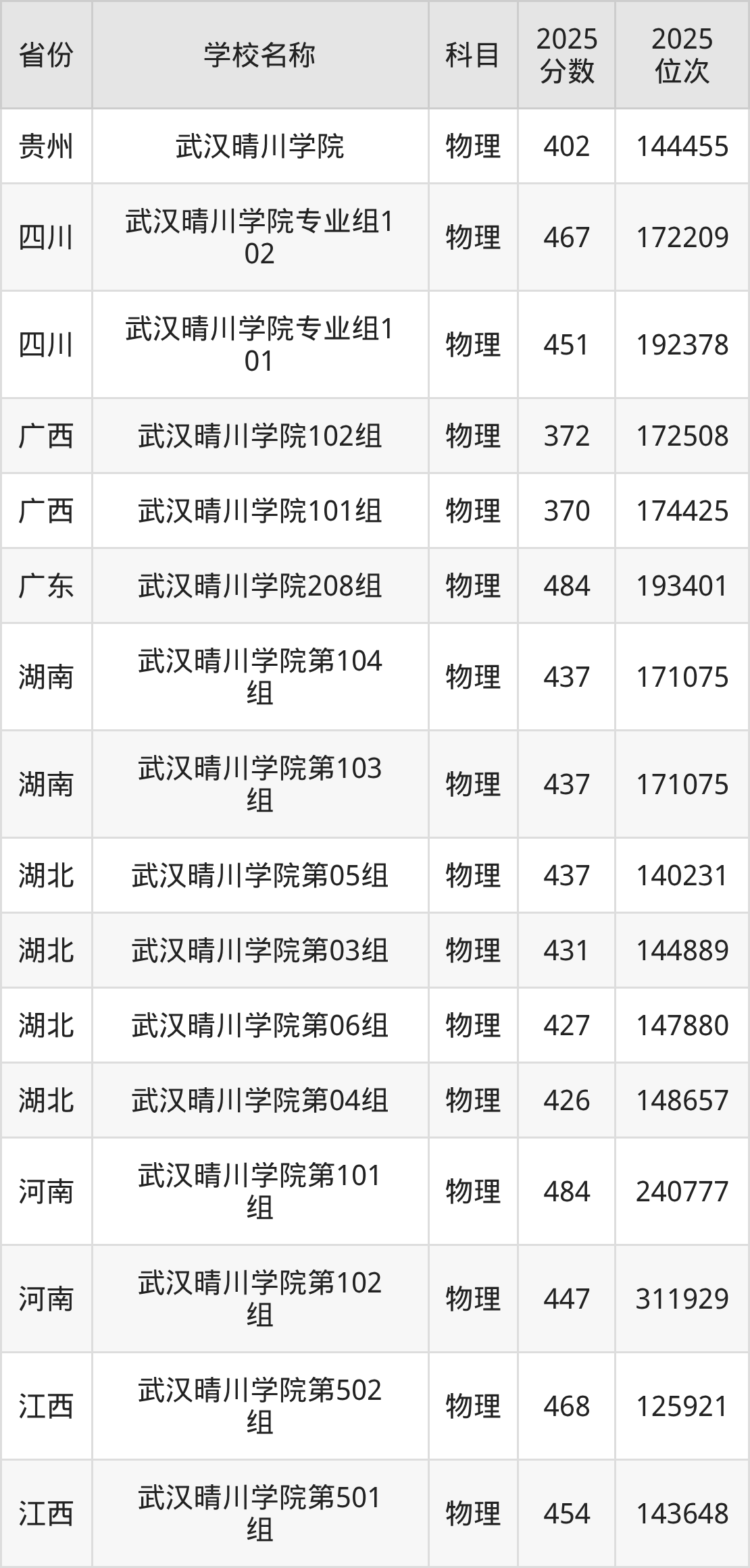 武汉晴川学院2025年有5个专业组面向湖北省内首选了物理科目的考生招生: