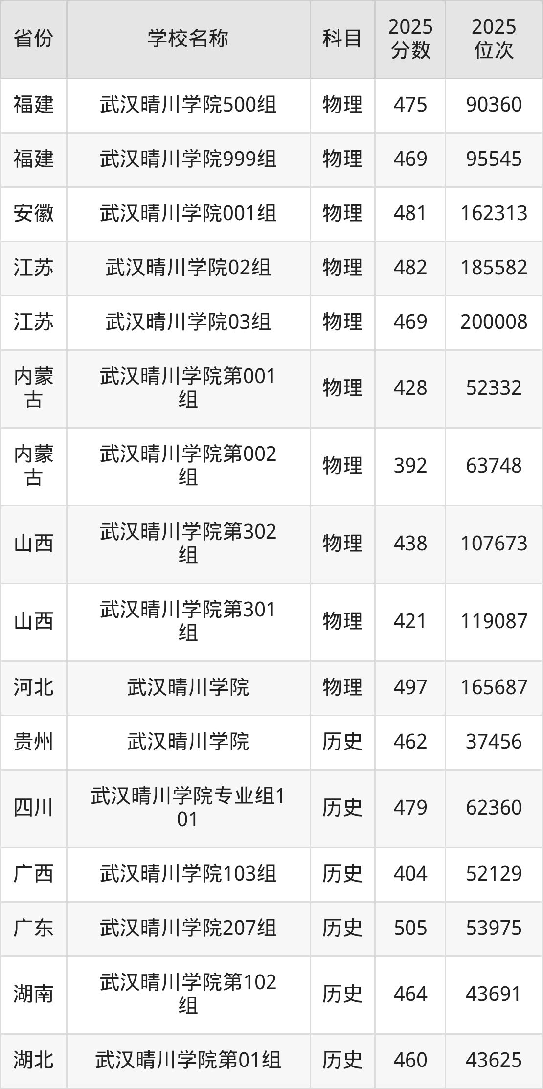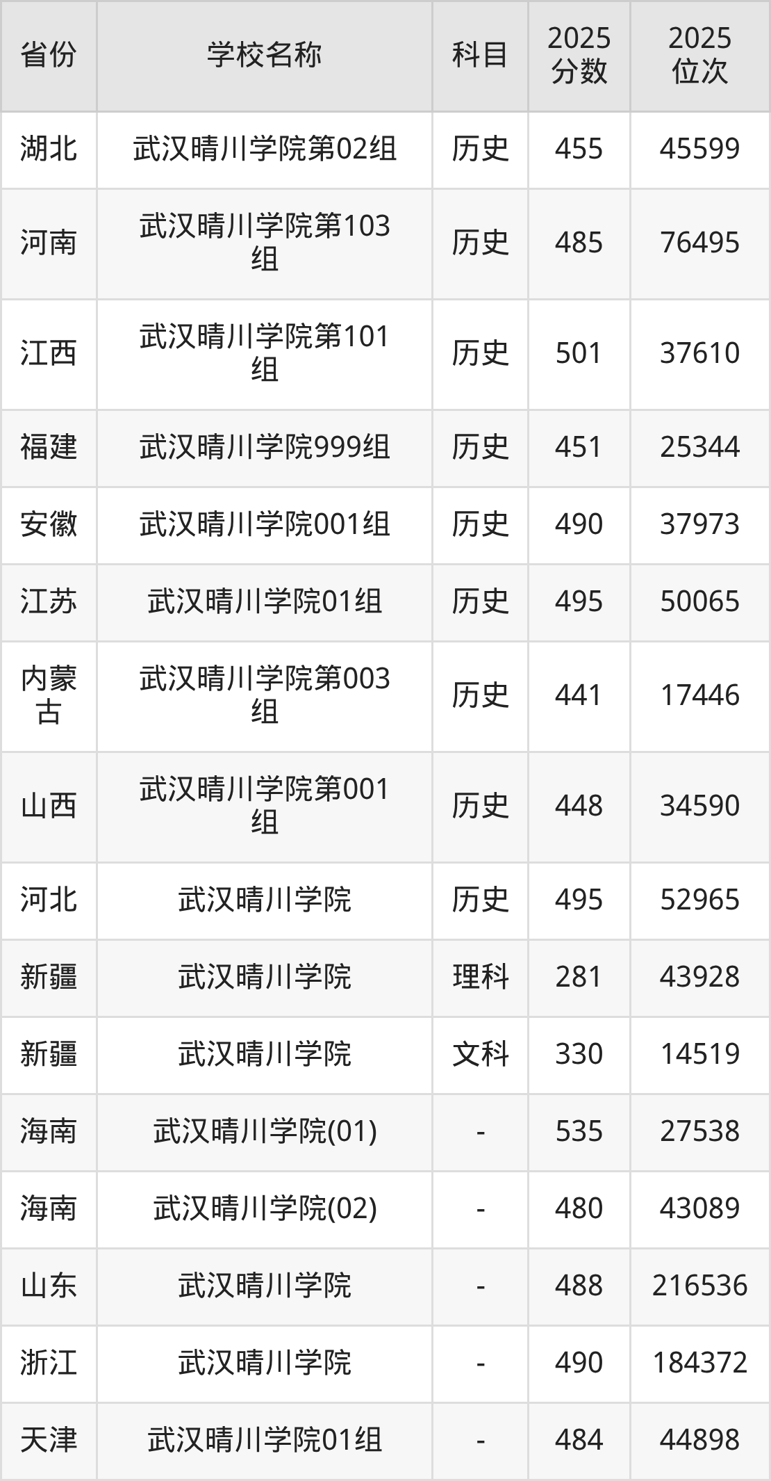 一、2025武汉晴川学院录取分数线