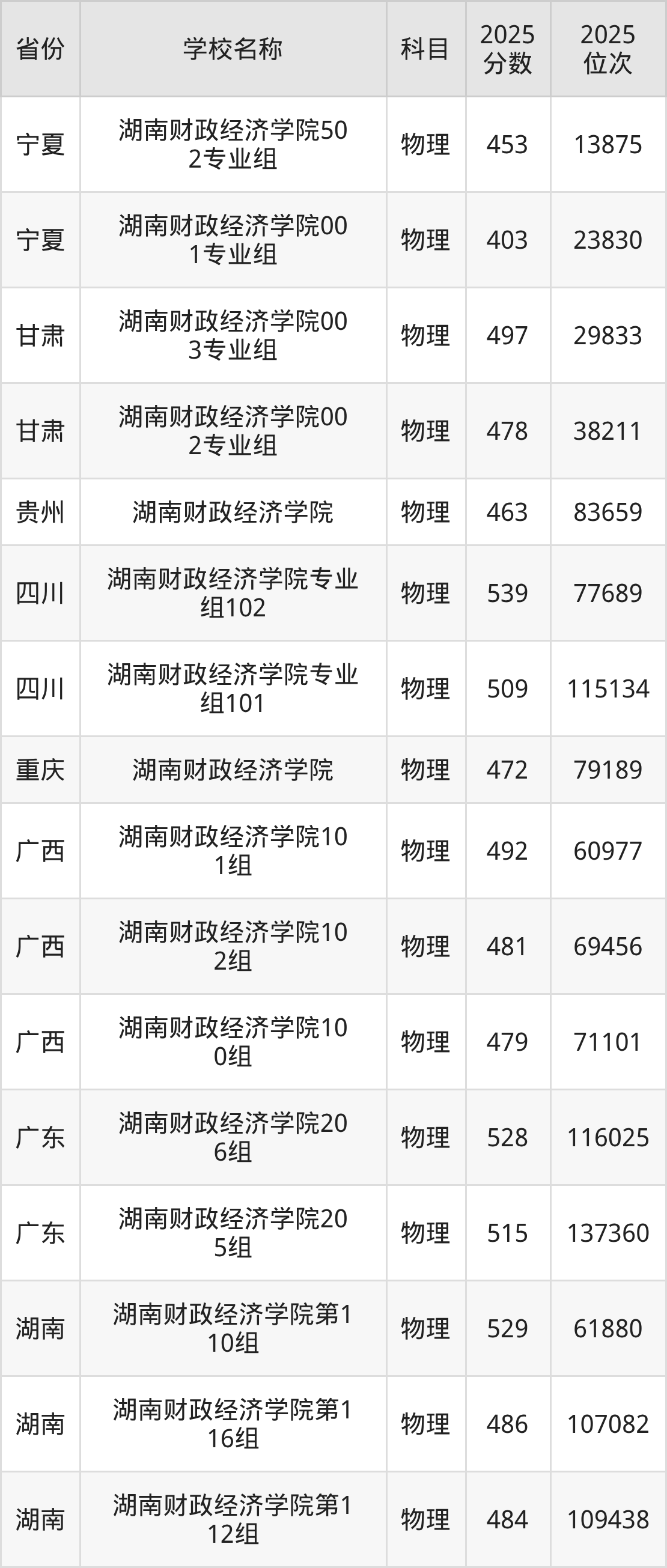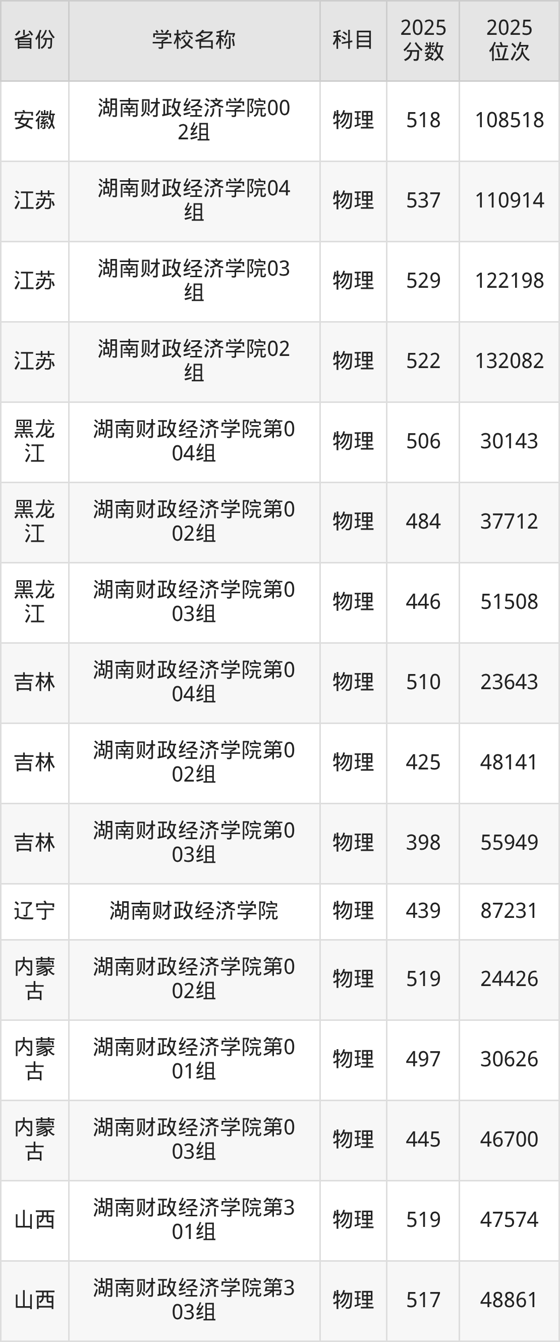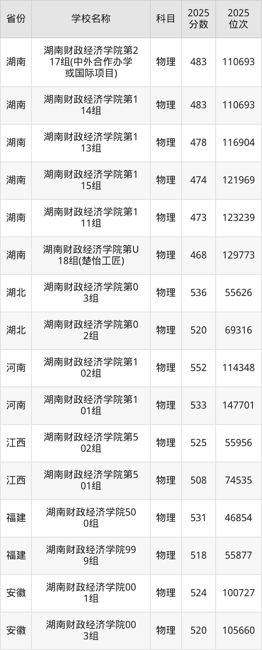 湖南财政经济学院2025年有9个专业组面向湖南省内首选了物理科目的考生招生: