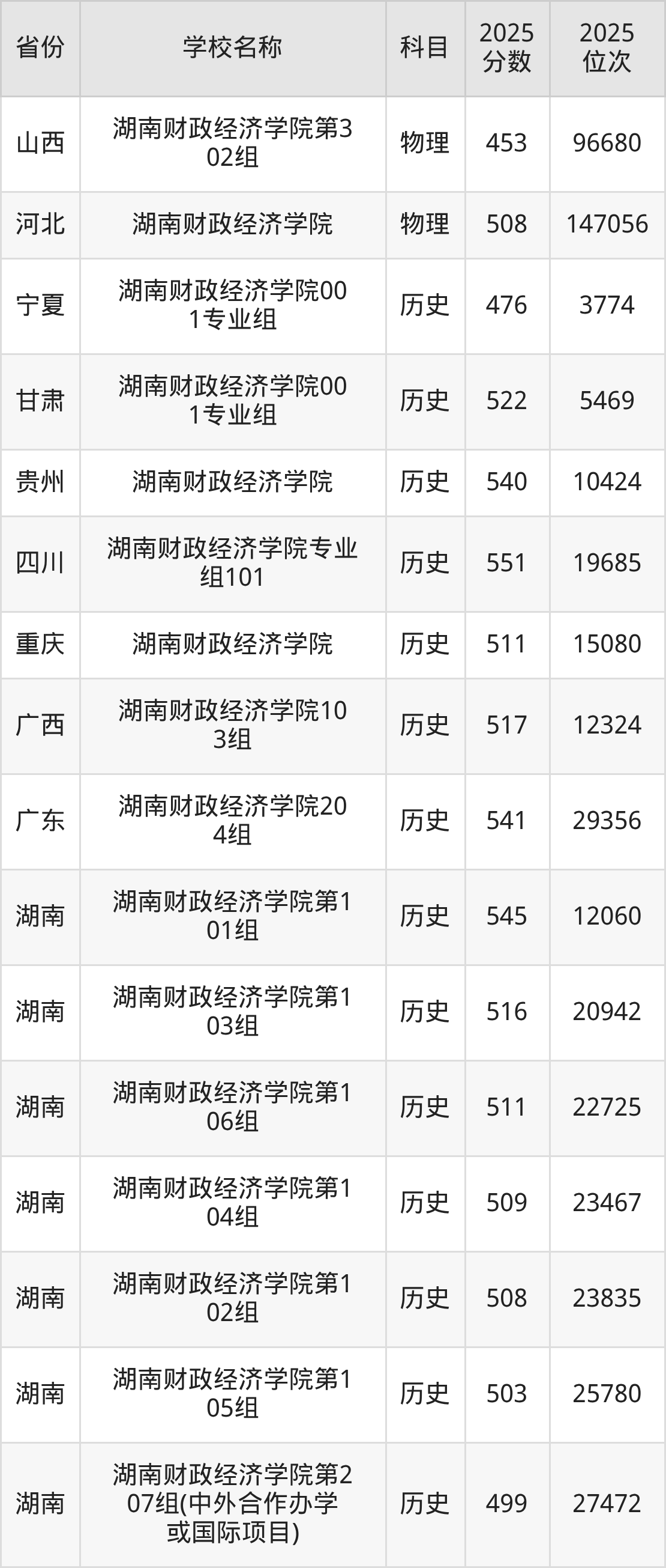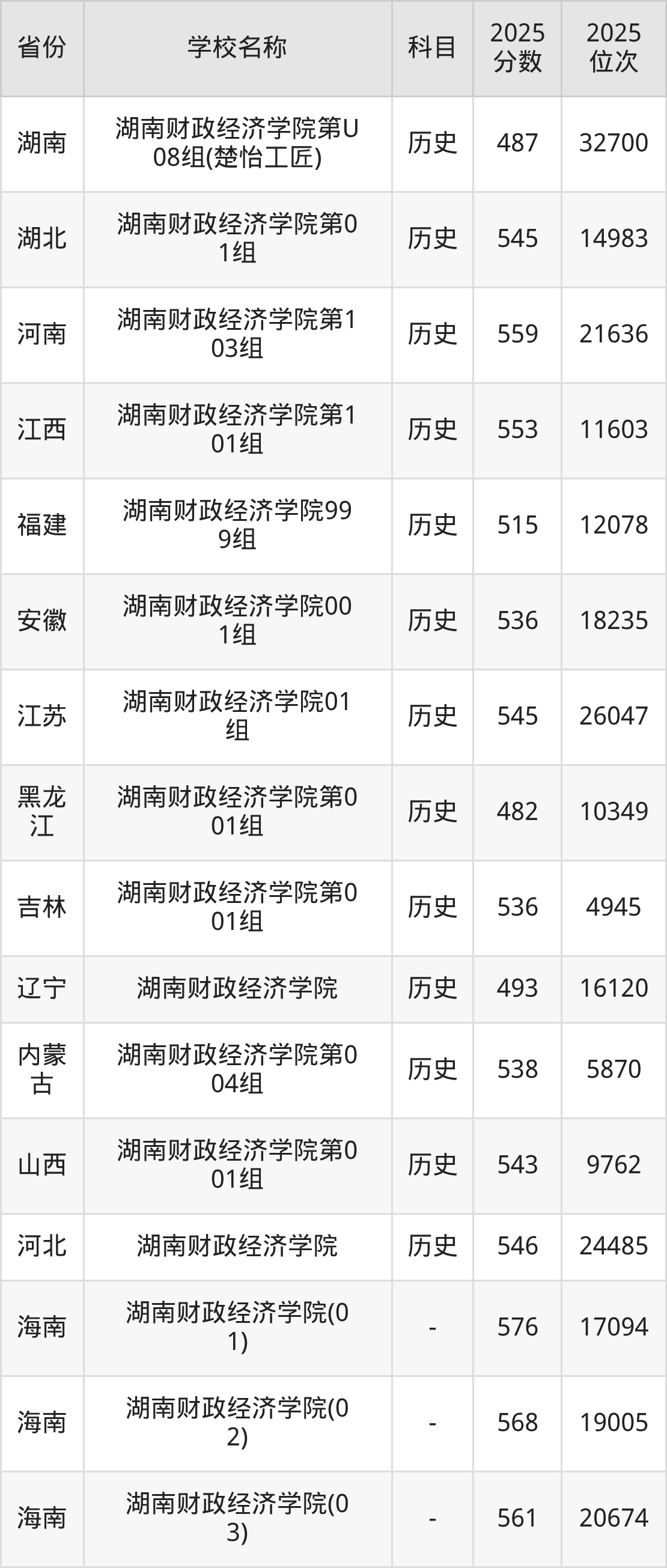 湖南财政经济学院2025年有8个专业组面向湖南省内首选了历史科目的考生招生: