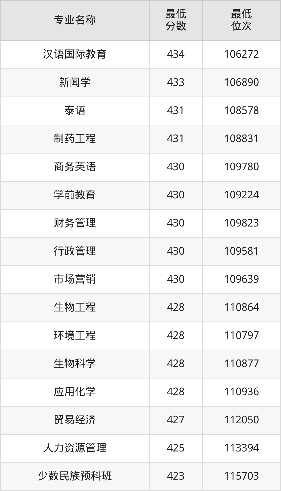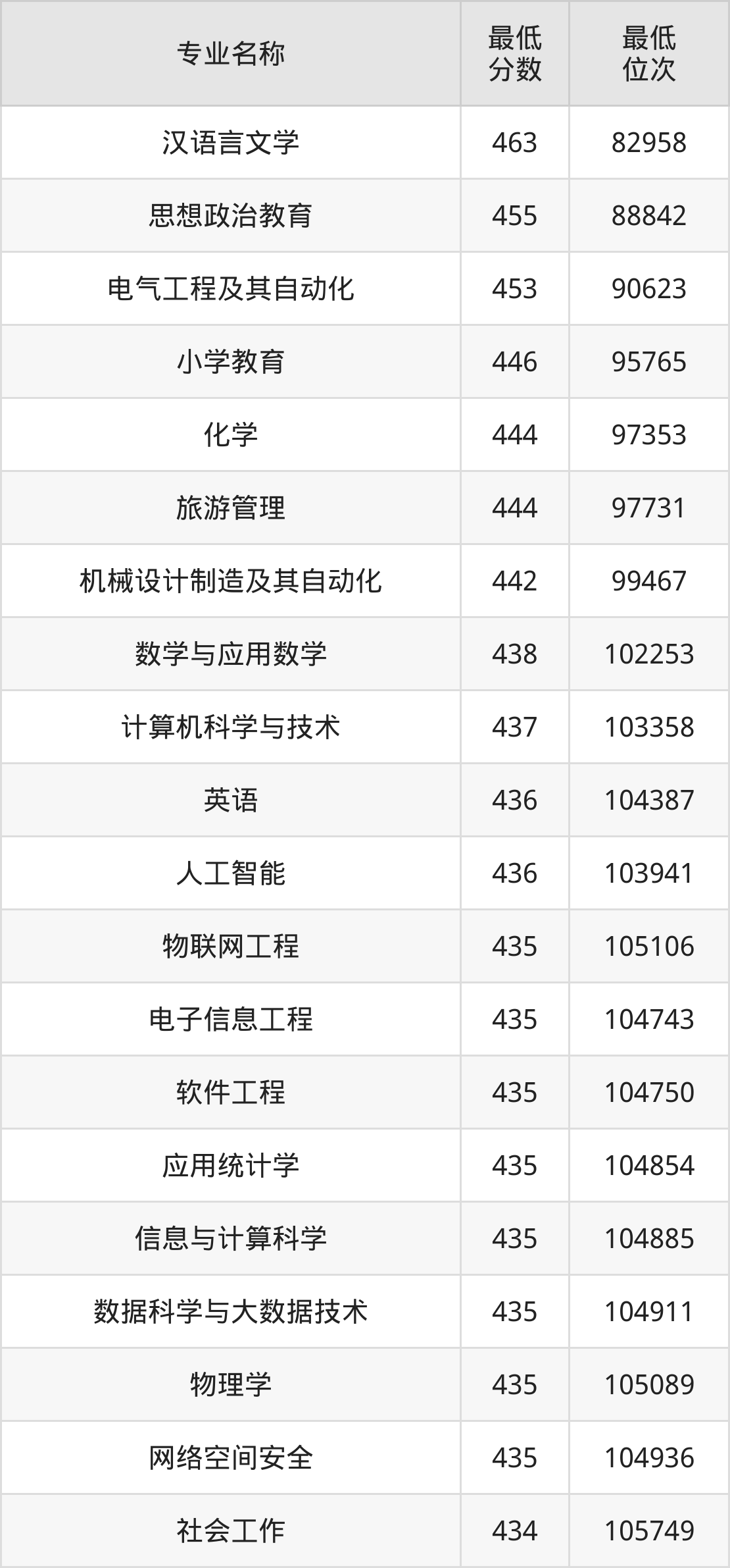 | 云南 | 理科二本 | —— | 462/435/466 |