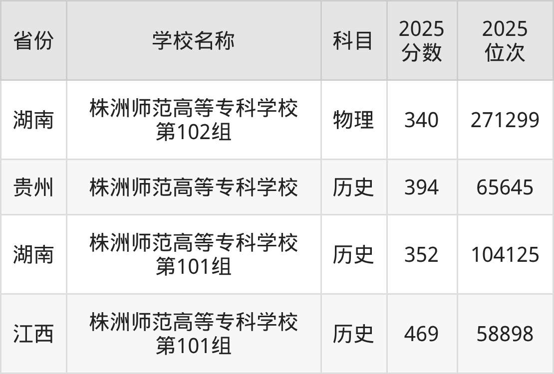 一、2025株洲师范高等专科学校录取分数线