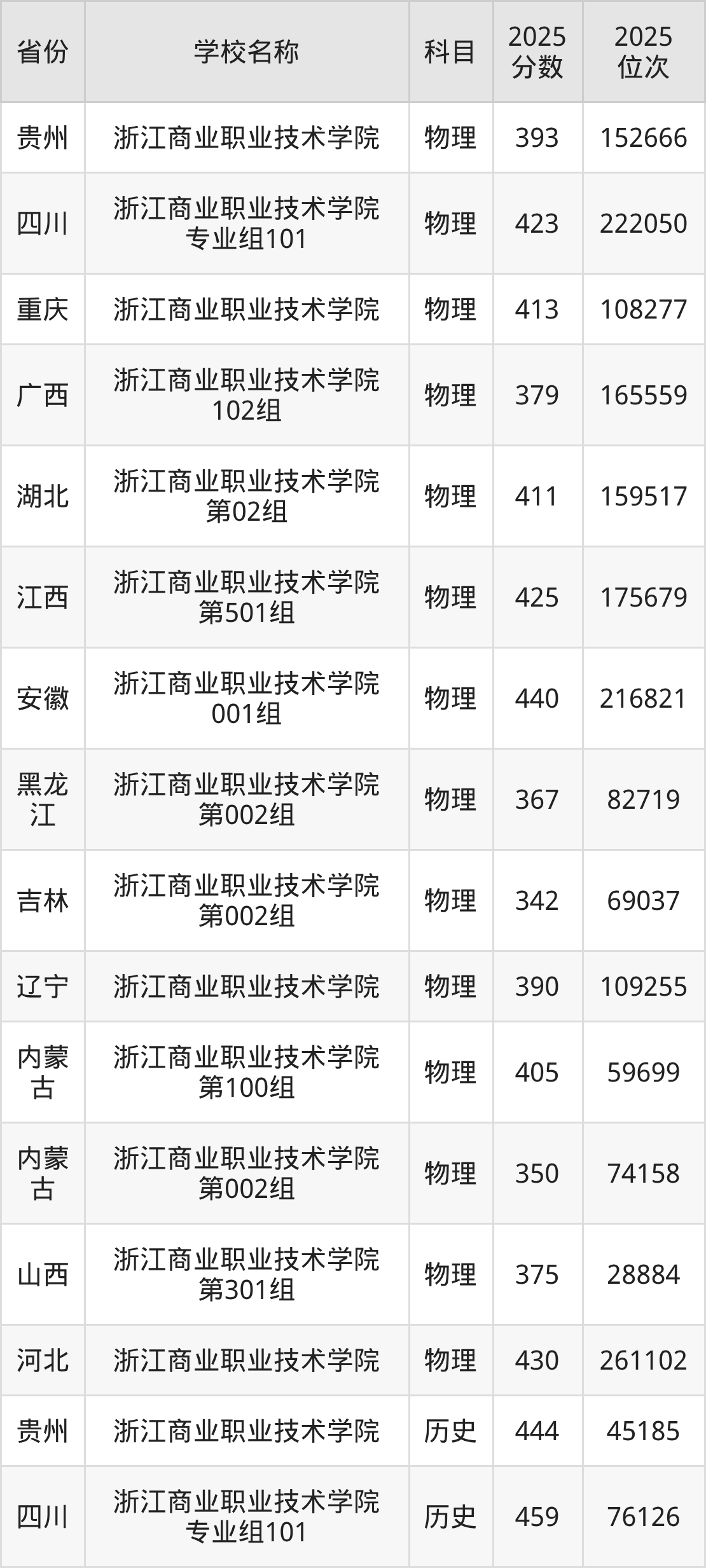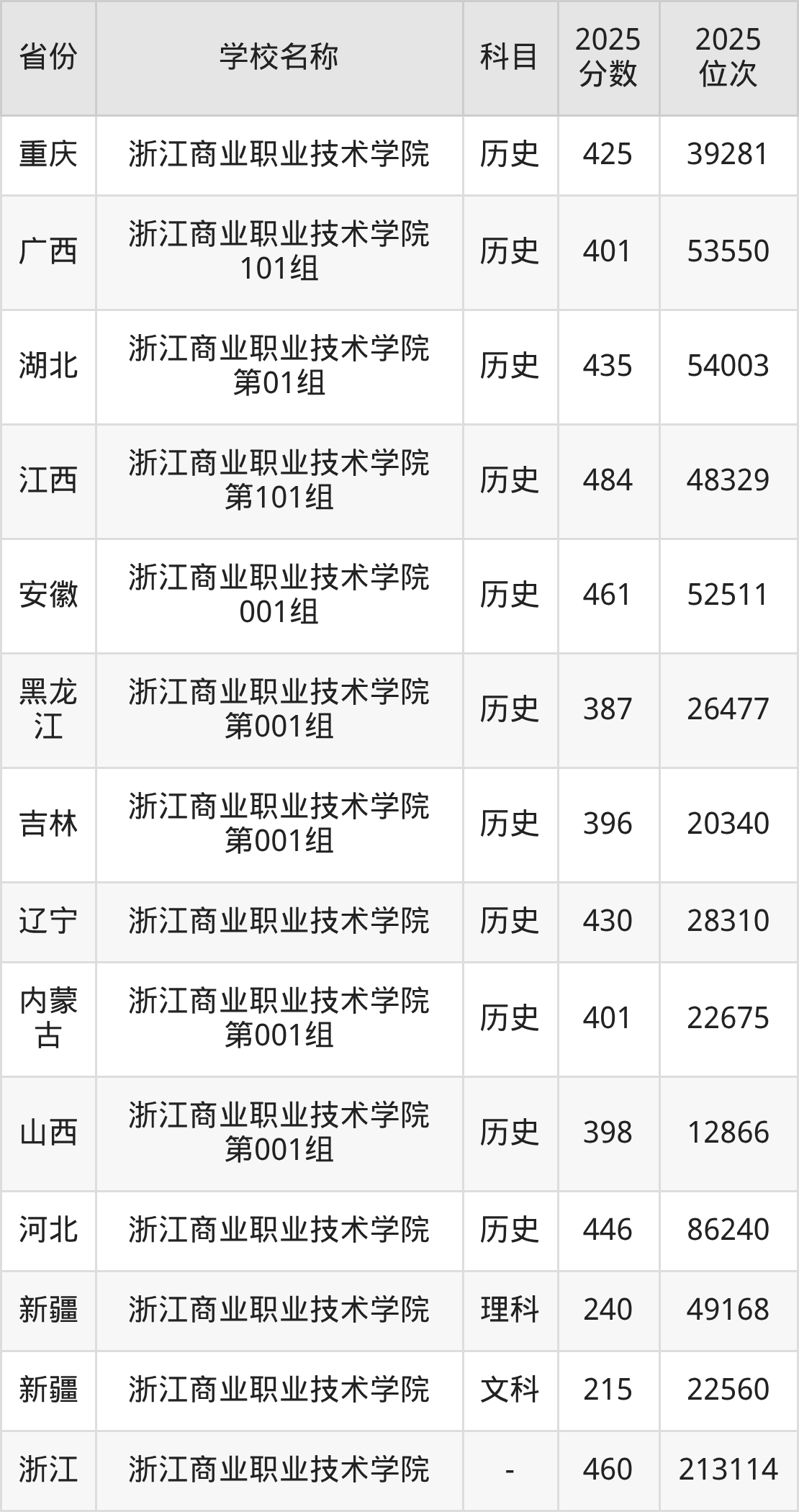 2025年浙江商业职业技术学院在全国各省专科的最低录取分数线在215~484分之间。浙江高考生最低460分能上浙江商业职业技术学院、安徽物理类高考生最低440分能上浙江商业职业技术学院……下文将展示浙江商业职业技术学院在全国15个高考省份中的专科最低投档录取分汇总!