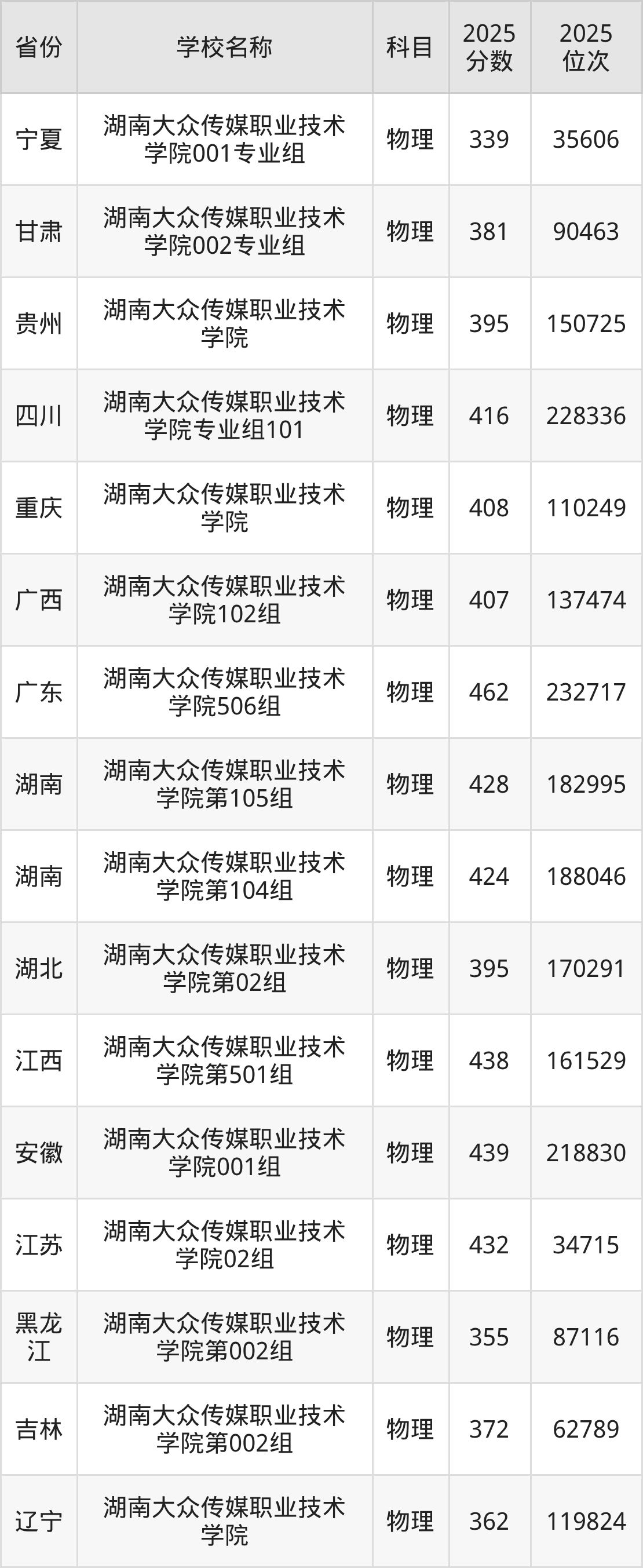 湖南大众传媒职业技术学院2025年有2个专业组面向湖南省内首选了物理科目的考生招生: