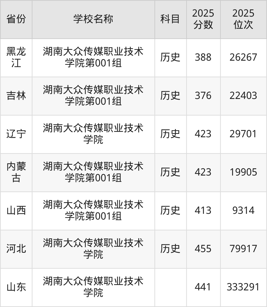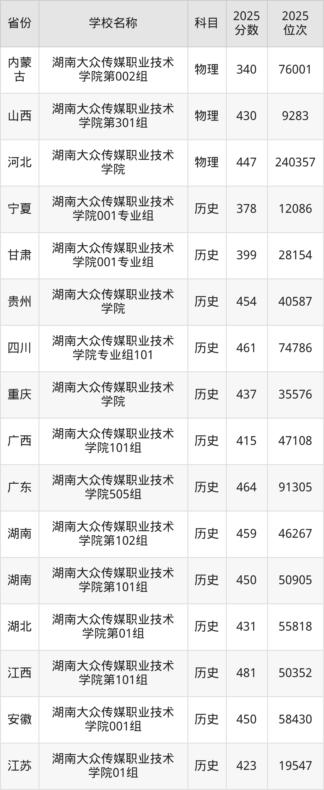 一、2025湖南大众传媒职业技术学院录取分数线