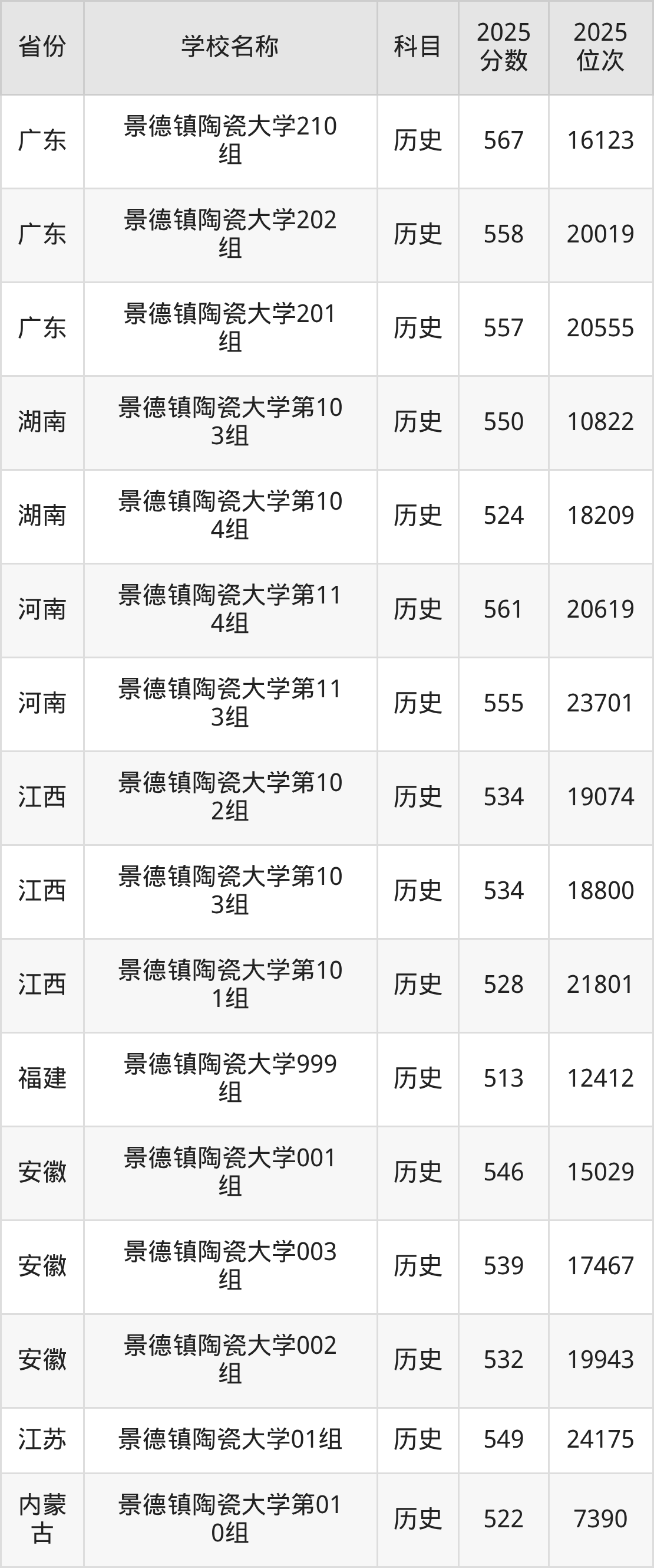 景德镇陶瓷大学2025年有3个专业组面向江西省内首选了历史科目的考生招生: