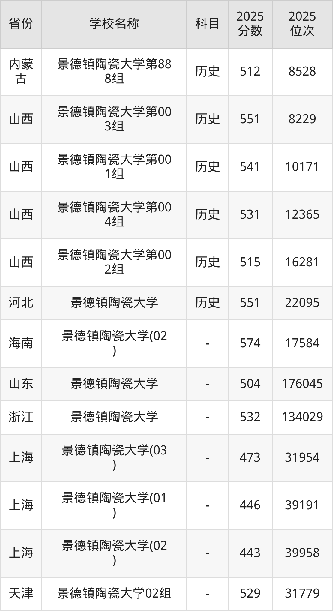 一、2025景德镇陶瓷大学录取分数线