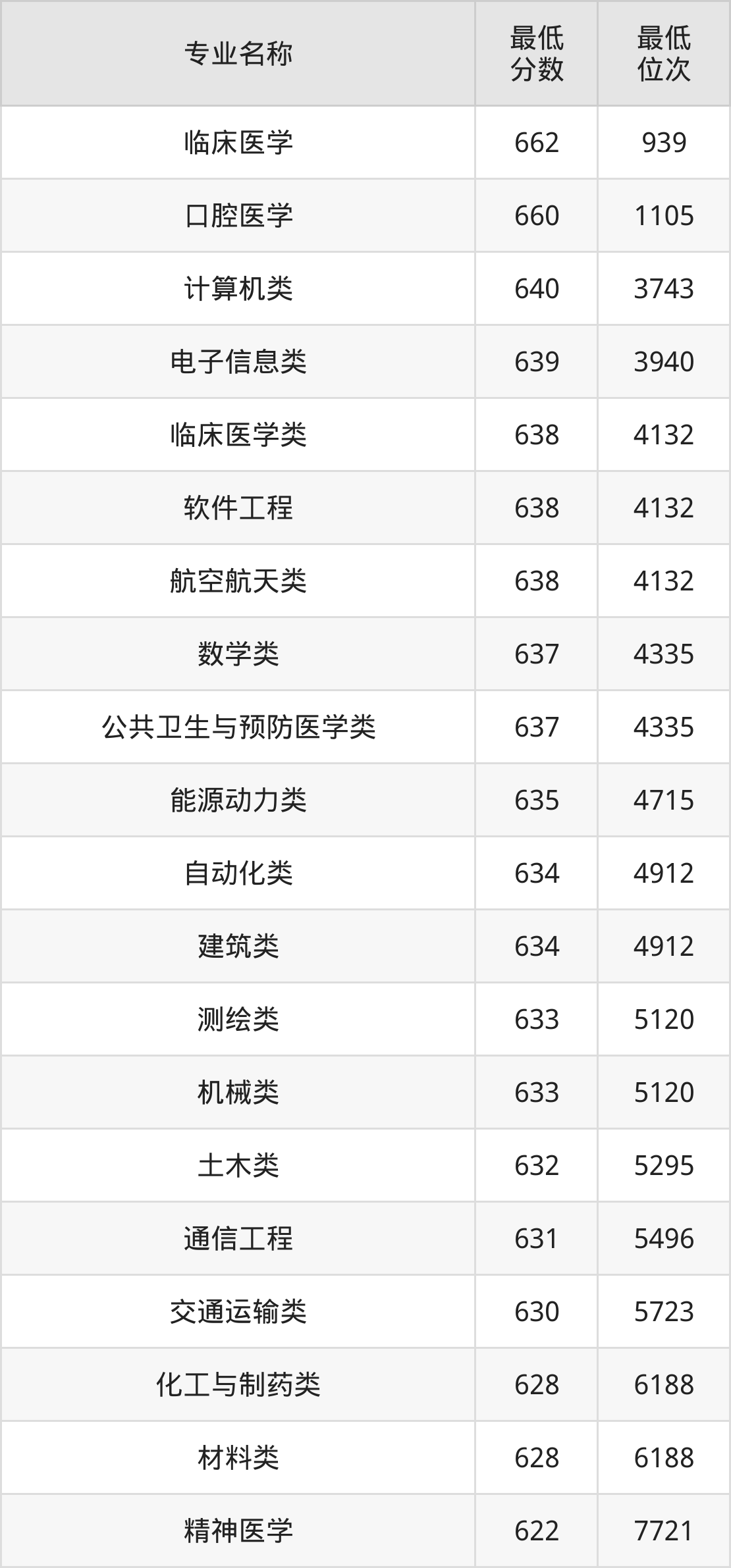 | 河南 | 理科本科一批 | —— | 622/621/609 |