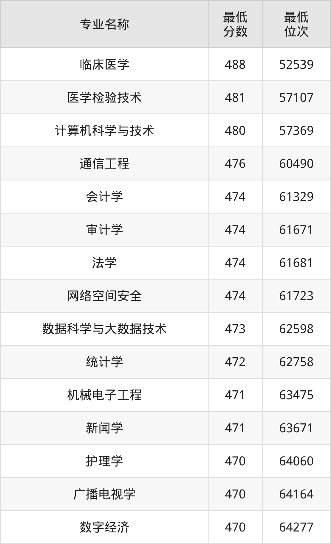 | 云南 | 理科二本 | —— | 482/419/498 |