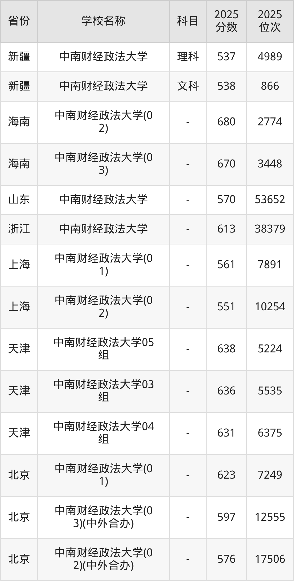 再看湖北高考2025年特招批次线,历史类是536分、物理类是516分。通过对比发现:中南财经政法大学2025年历史类最低分比特招线高63分,物理类最低分比特招线高70分。2026届湖北高考生,可通过每一次模考划线,来判断自己的成绩是否有机会被中南财经政法大学录取。