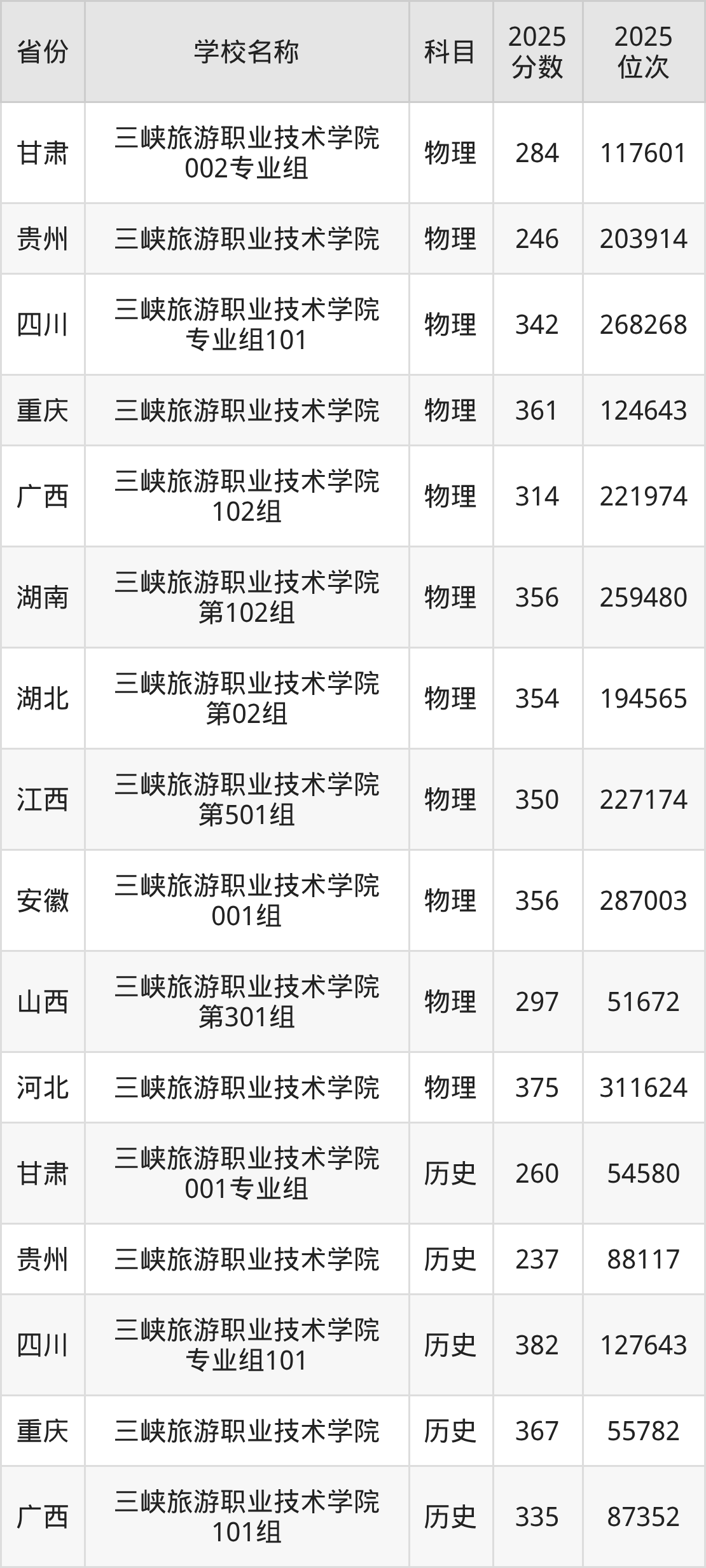 三峡旅游职业技术学院2025年有1个专业组面向湖北省内首选了物理科目的考生招生: