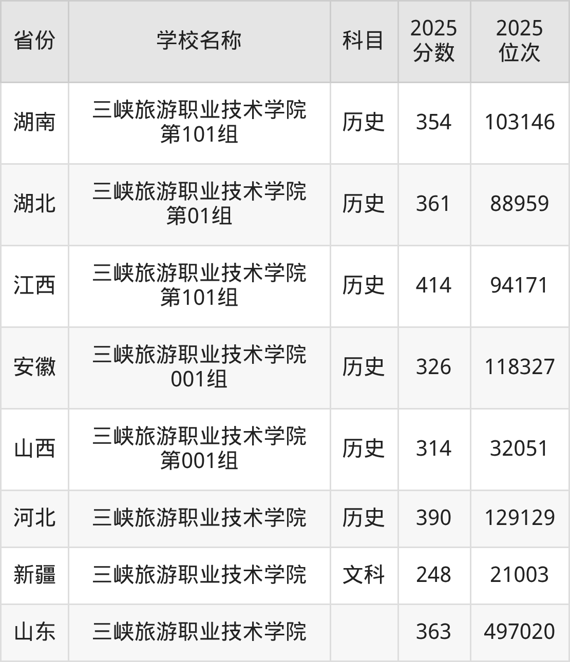 一、2025三峡旅游职业技术学院录取分数线