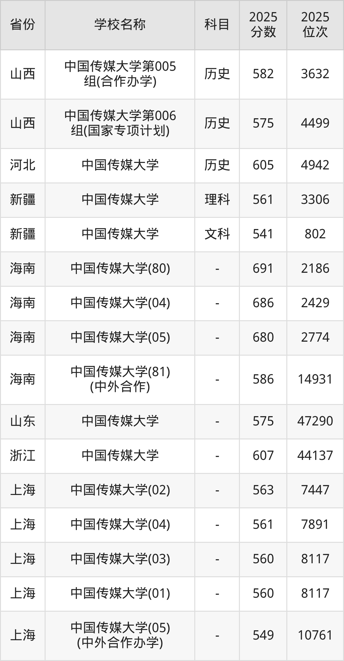 2025年中国传媒大学在全国各省本科的最低录取分数线在521~691分之间。海南高考生最低691分能上中国传媒大学、天津高考生最低658分能上中国传媒大学……下文将展示中国传媒大学在全国27个高考省份中的本科最低投档录取分汇总!
