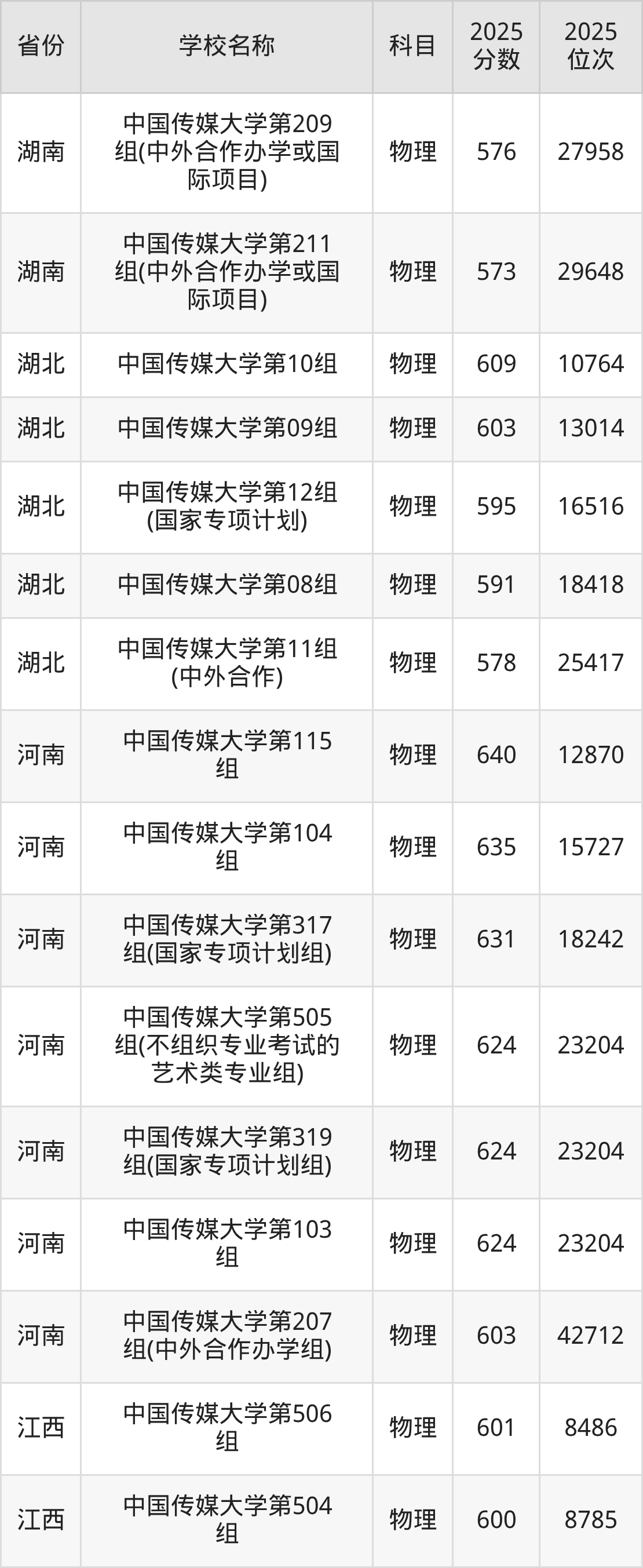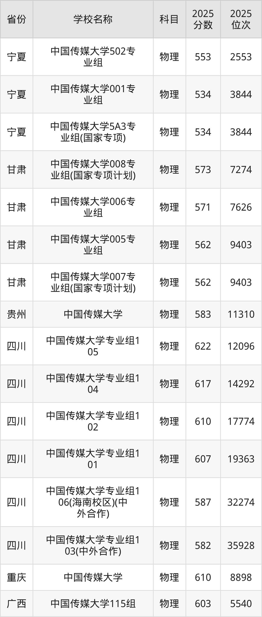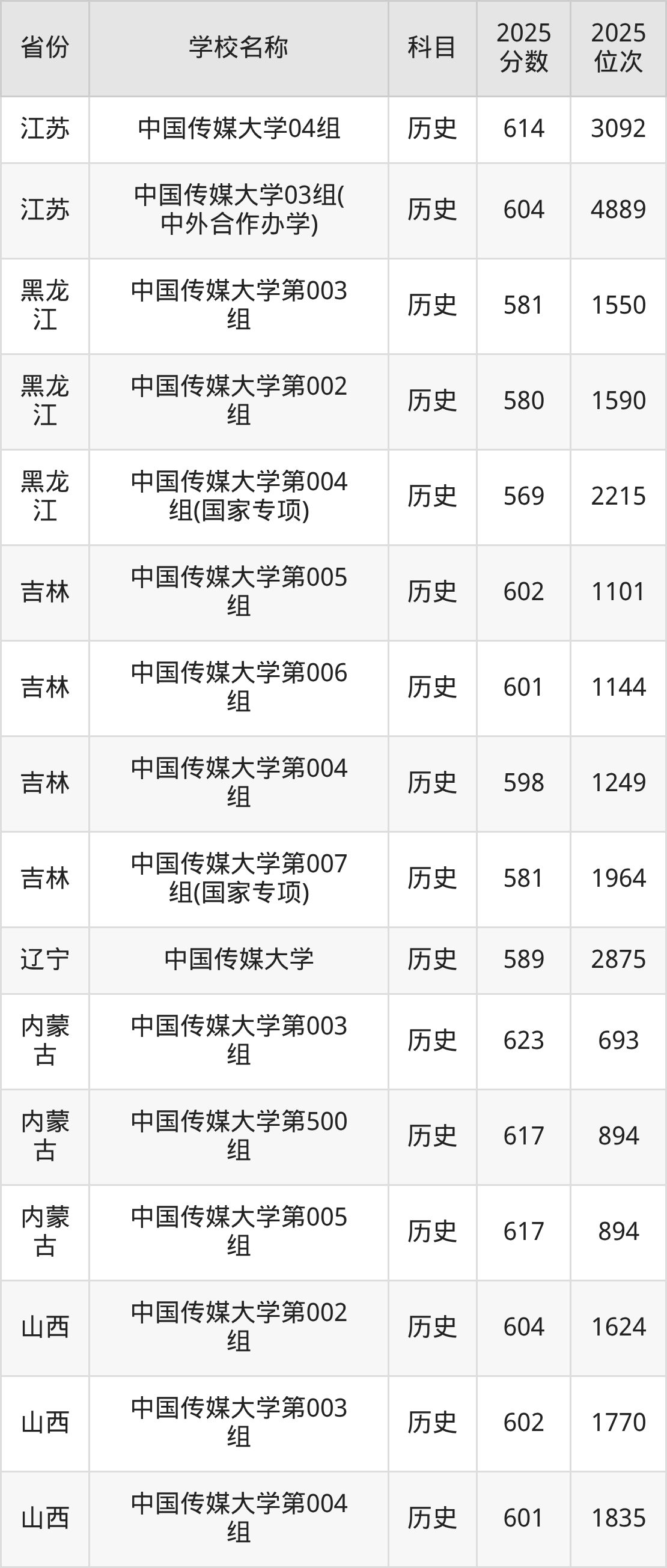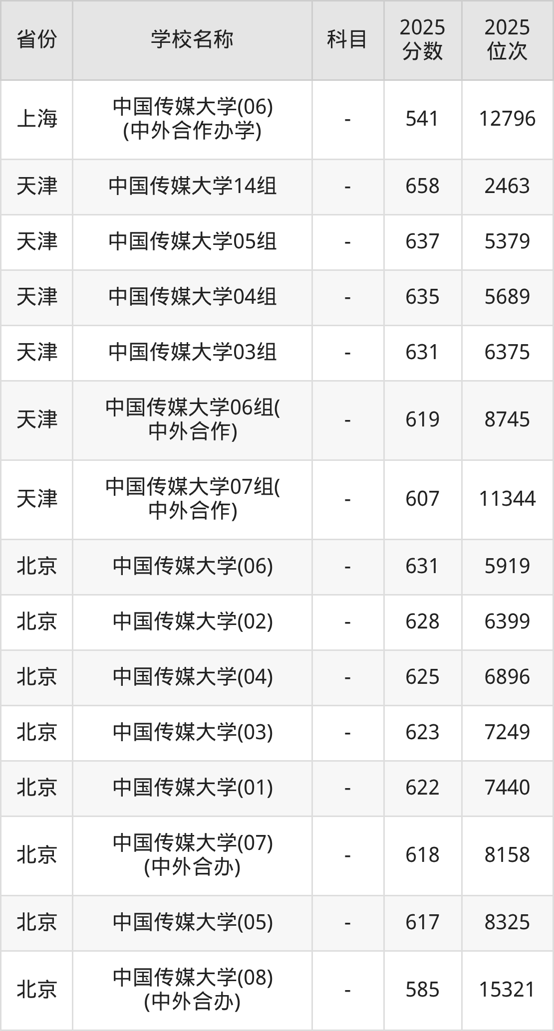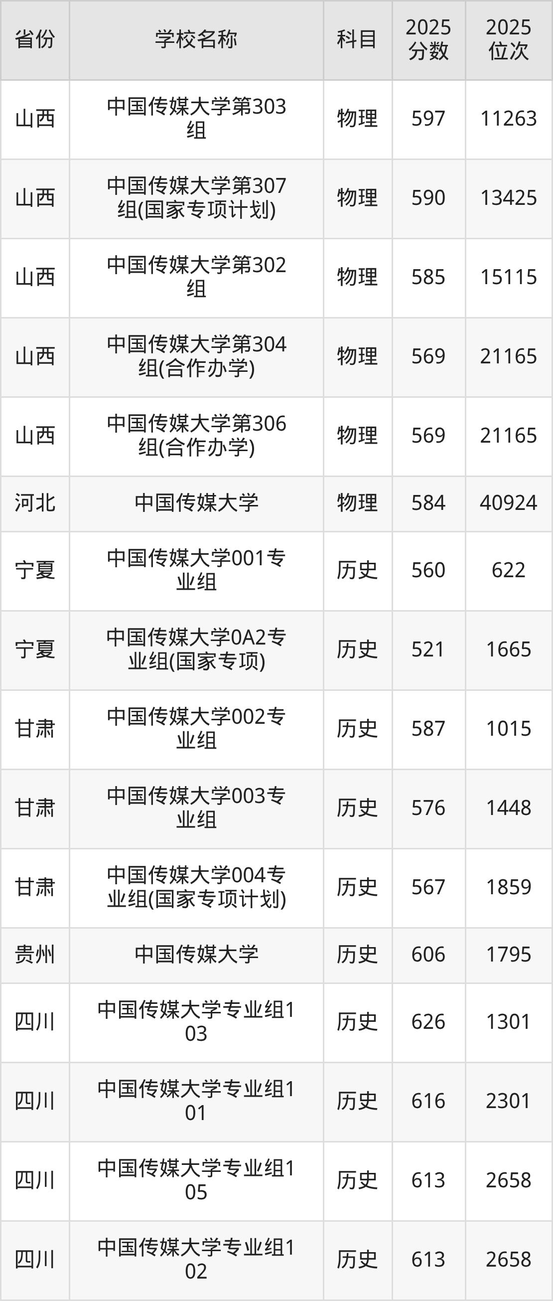 中国传媒大学2025年有9个专业组面向北京市内的考生招生:
