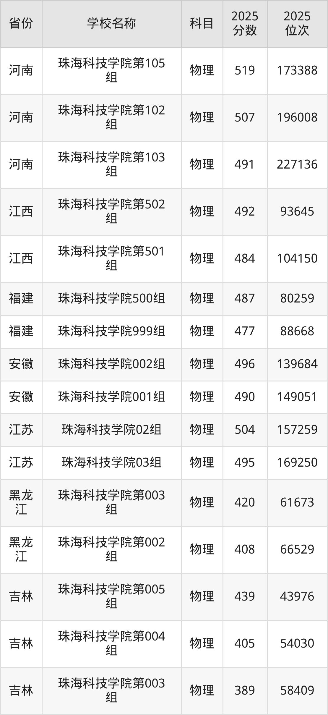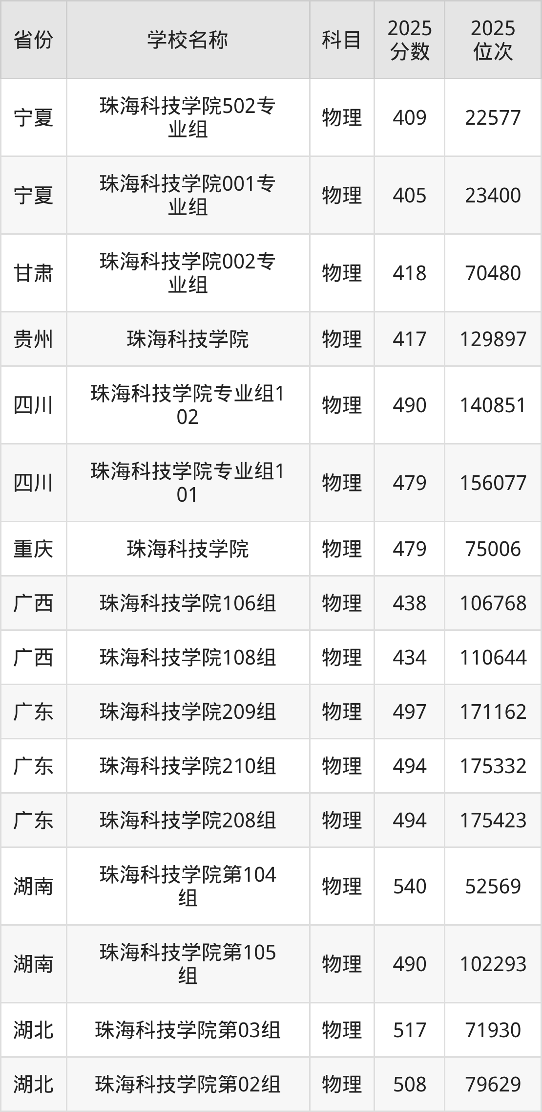 珠海科技学院2025年有3个专业组面向广东省内首选了物理科目的考生招生: