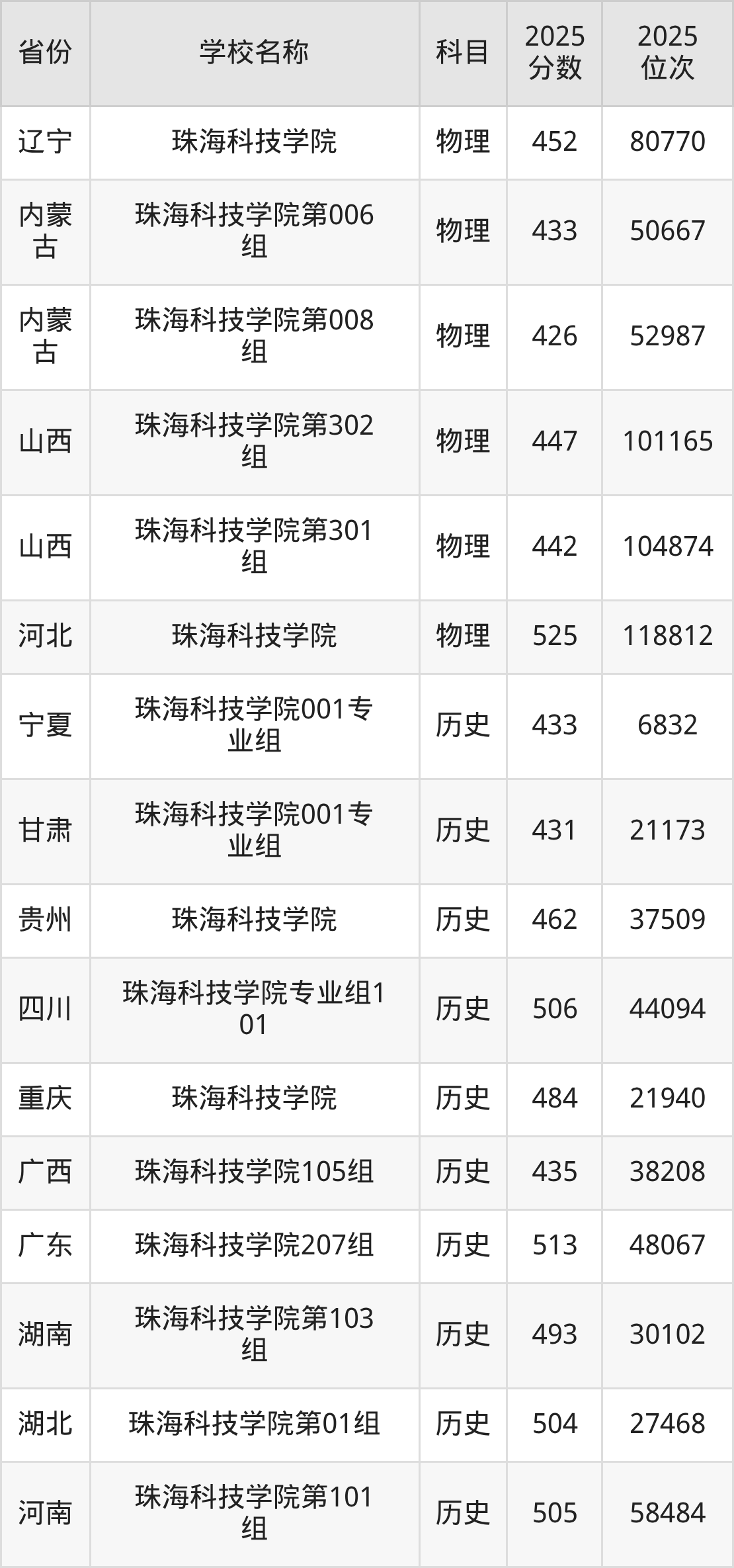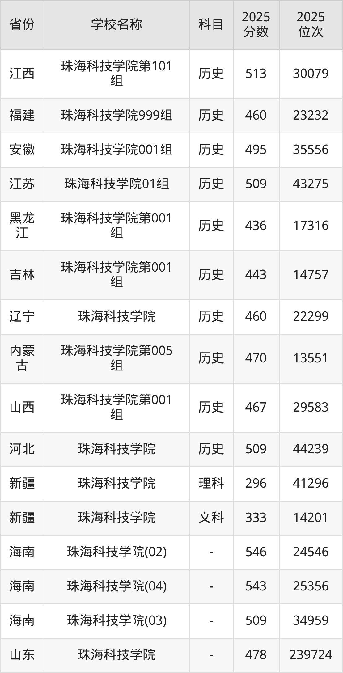 珠海科技学院2025年有1个专业组面向广东省内首选了历史科目的考生招生: