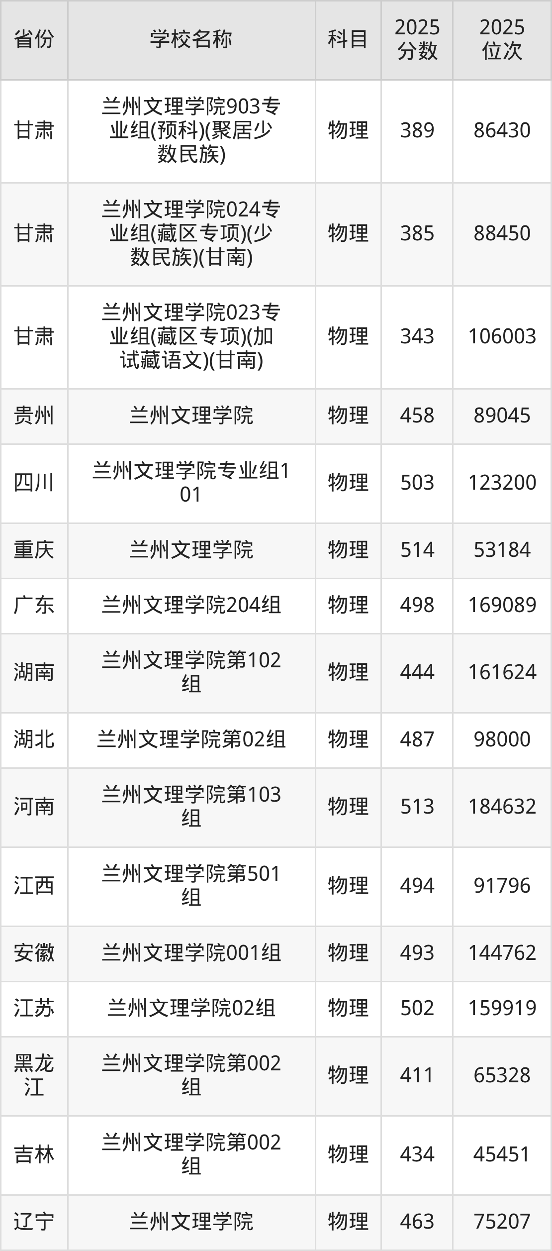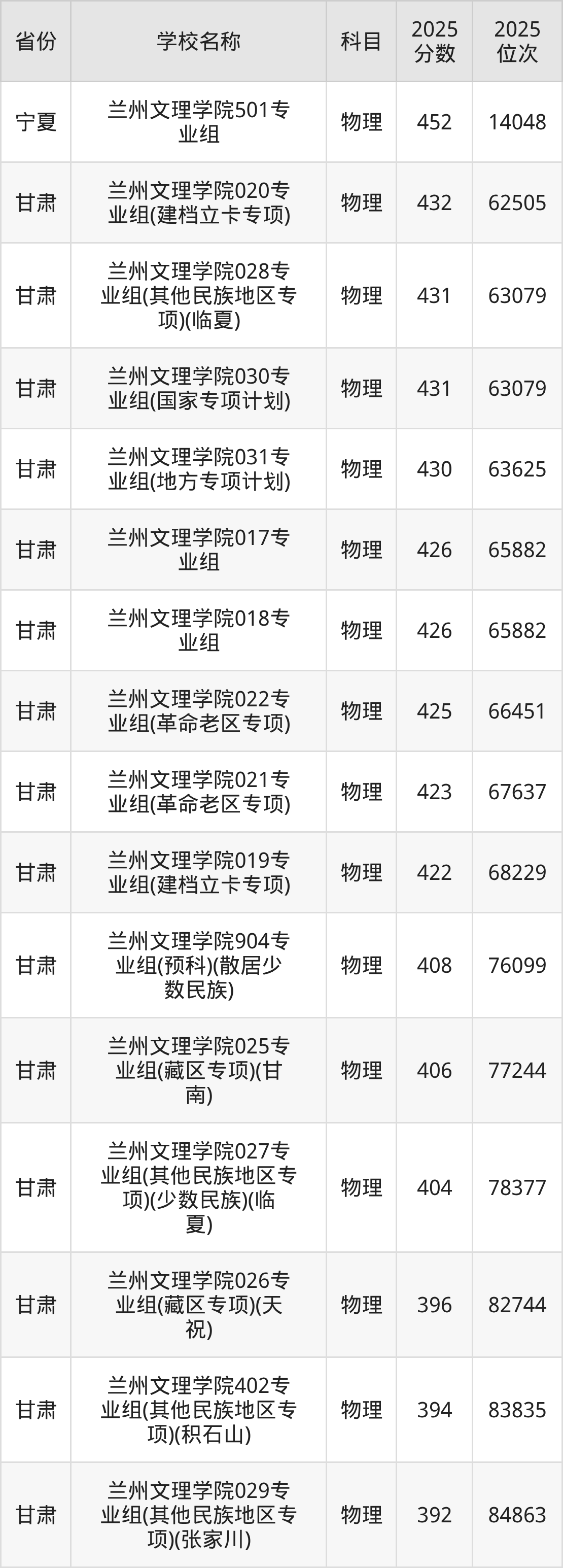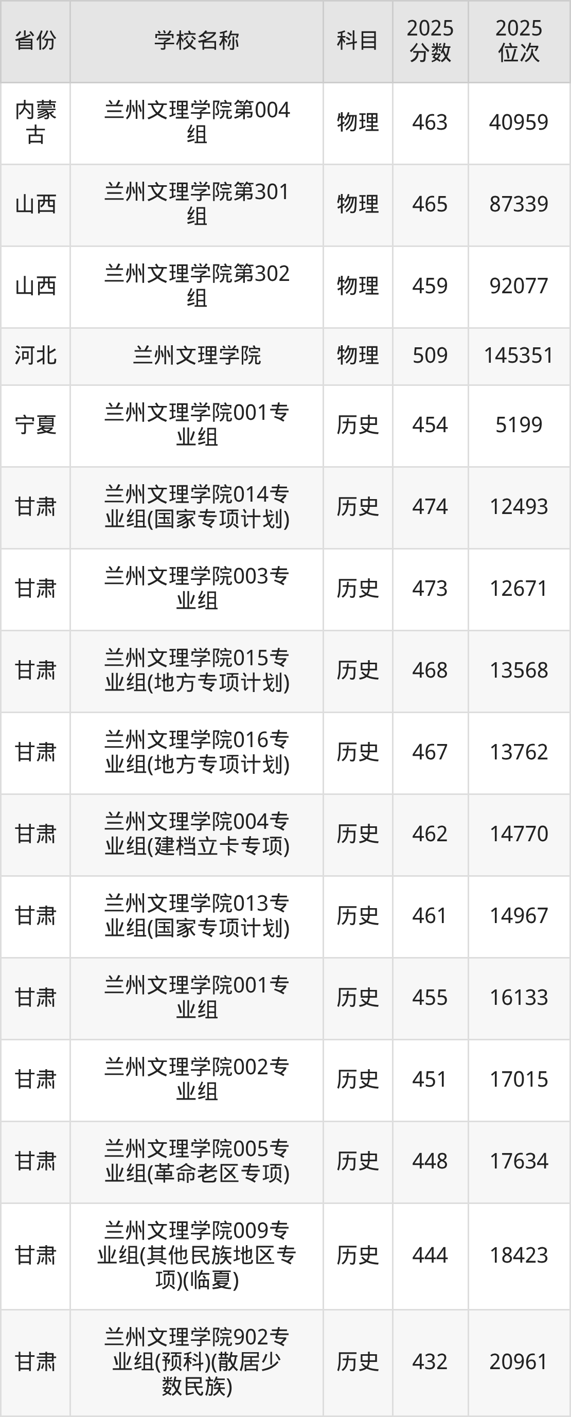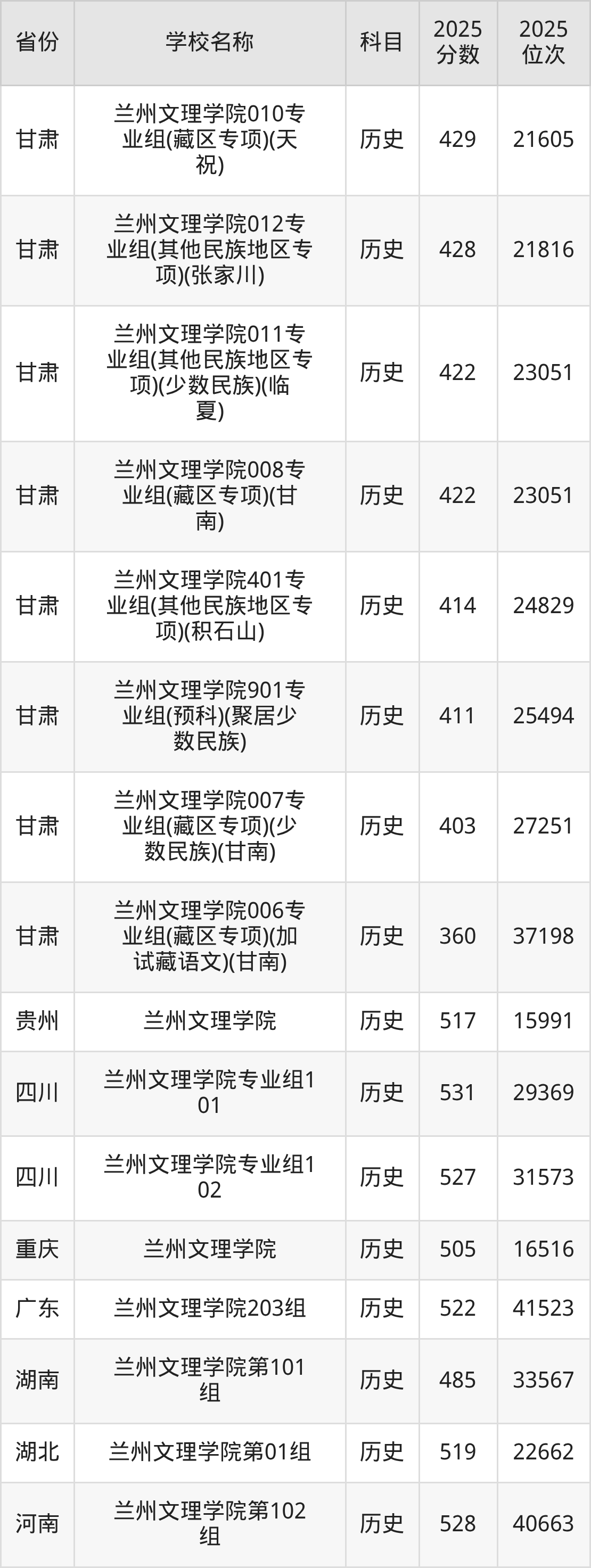 二、兰州文理学院各专业录取分数线