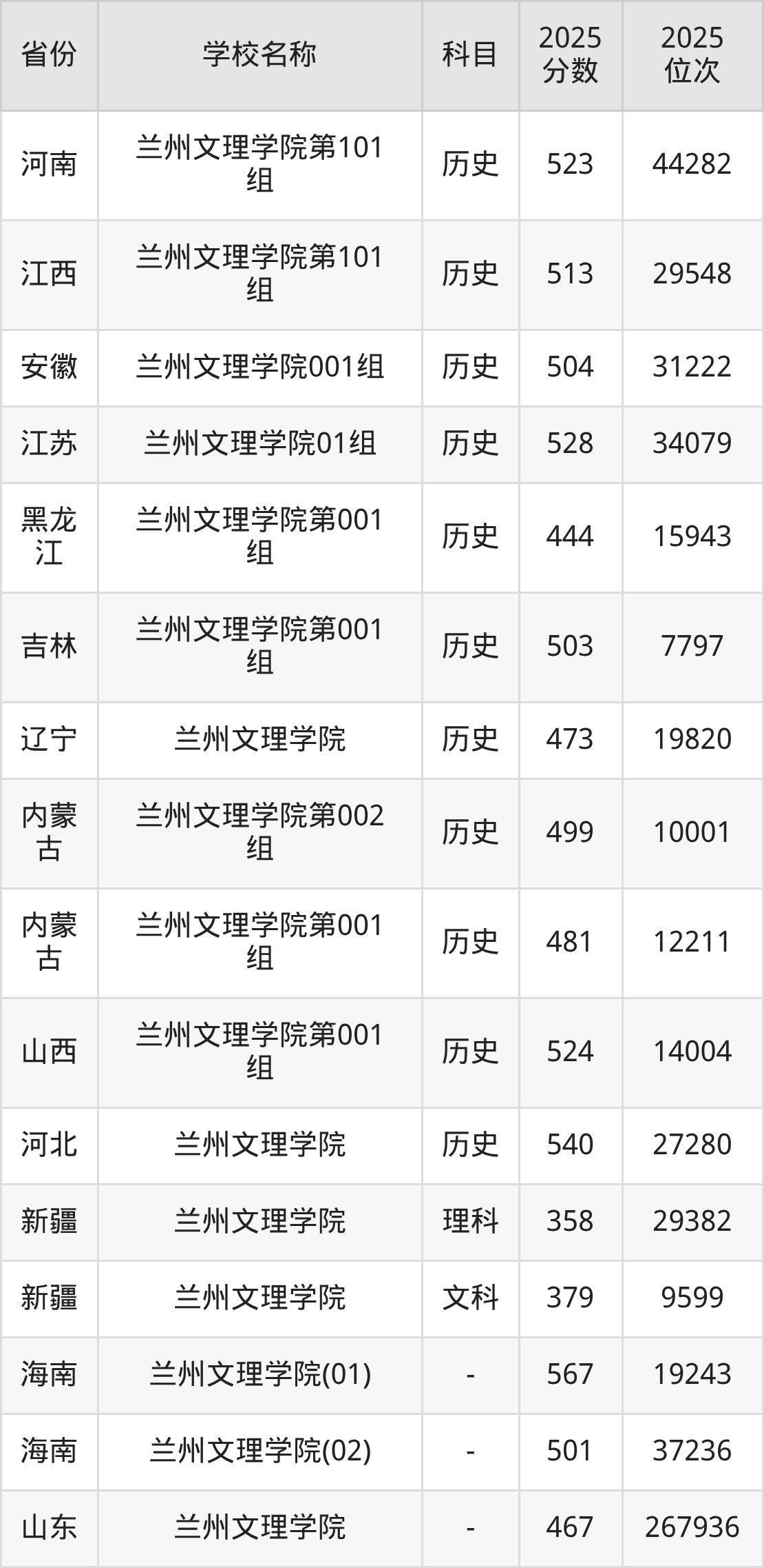 一、2025兰州文理学院录取分数线