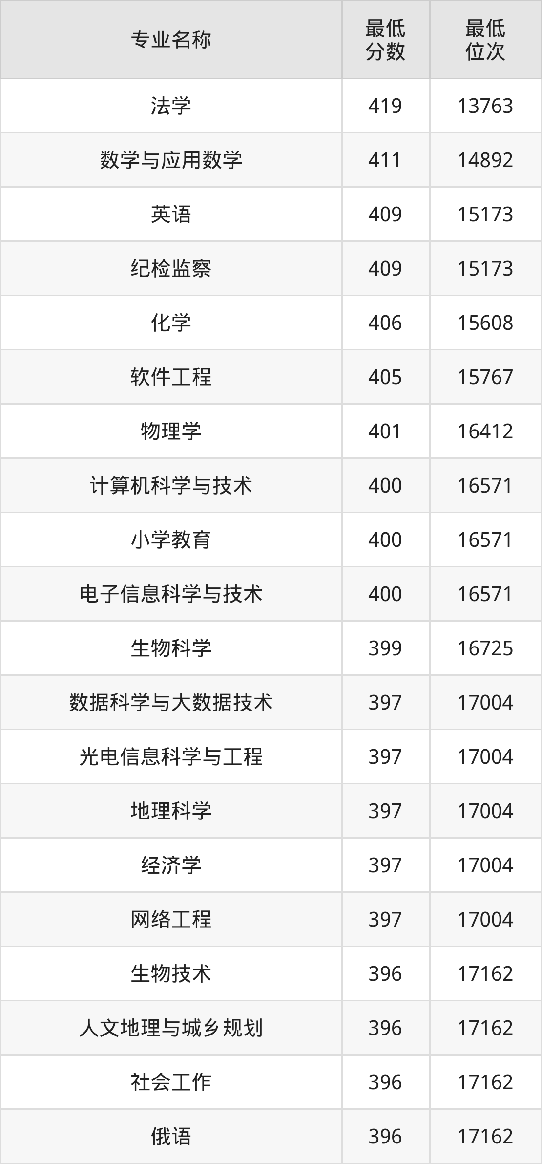 | 新疆 | 理科本科一批 | —— | 392/396/400 |