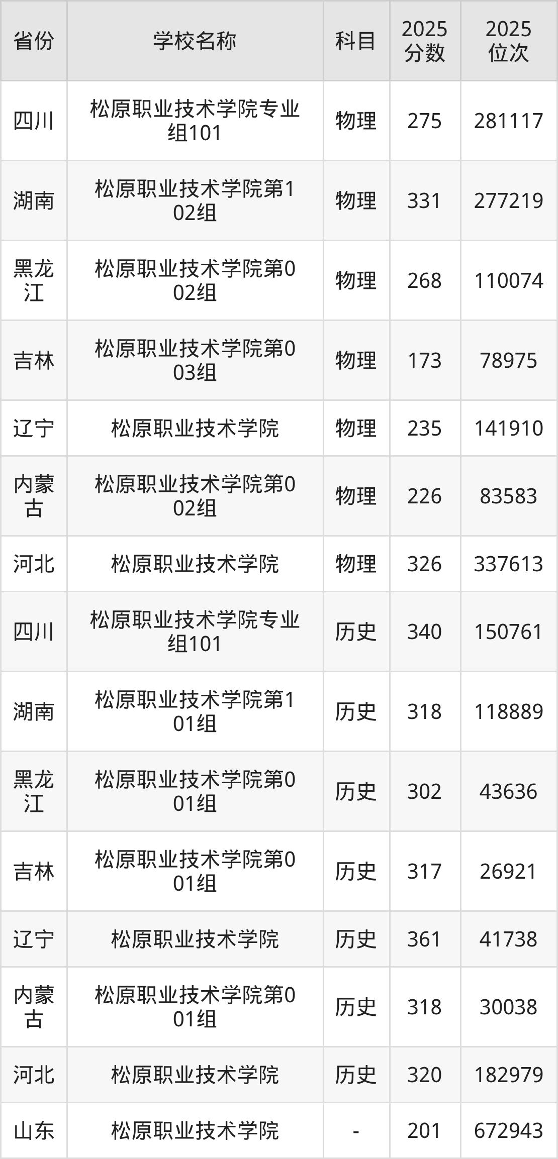 一、2025松原职业技术学院录取分数线